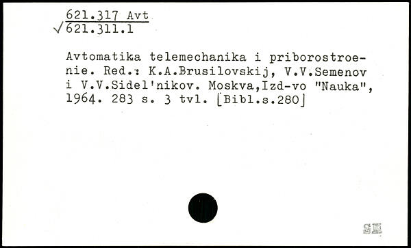 Avtomatika telemechanika i priborostroe-nie. Red.-: K.A.Brusilovskij, V.V.Semenov i V.V.Sidel’nikov. Moskva,Izd-vo "Nauka", 1964