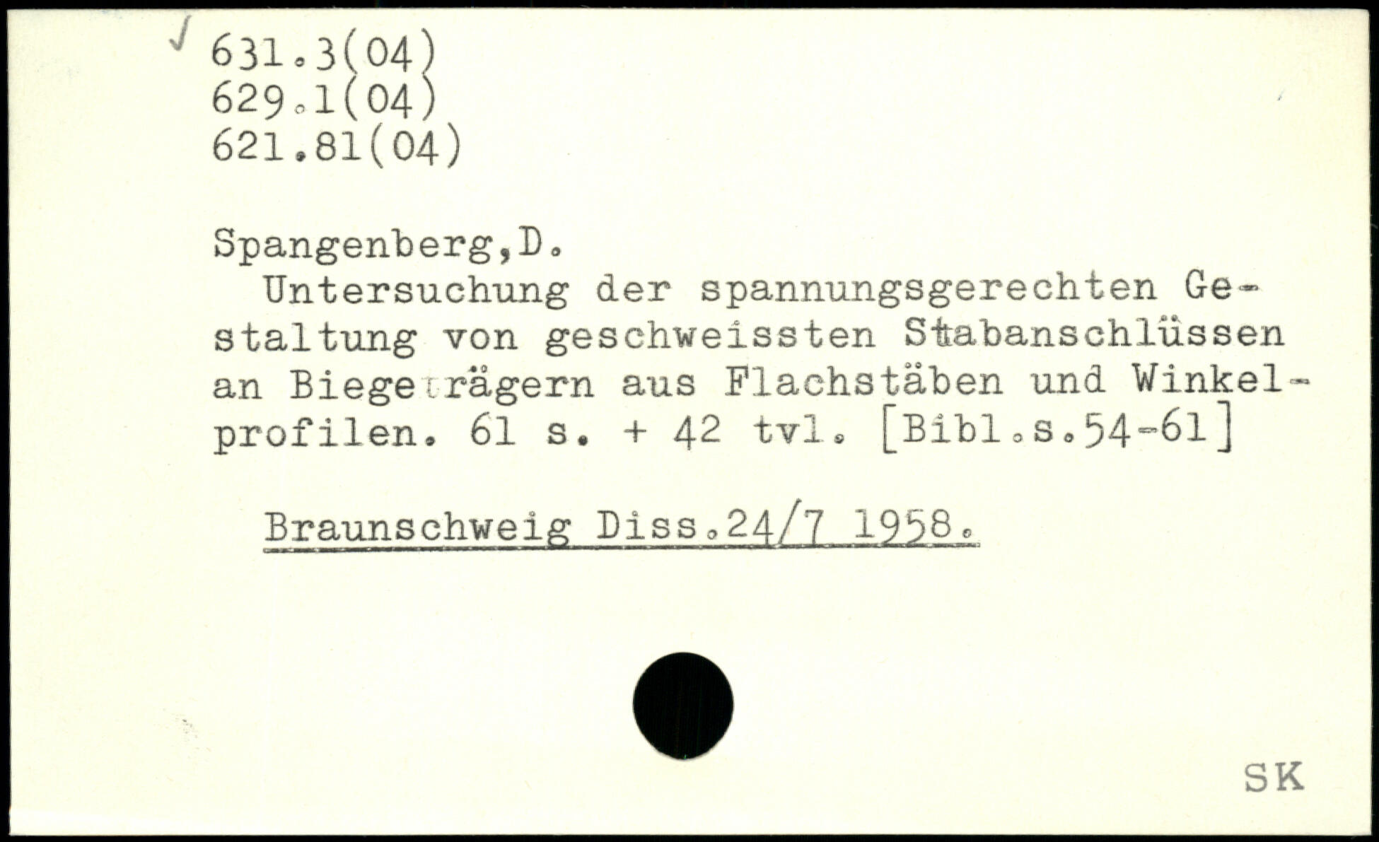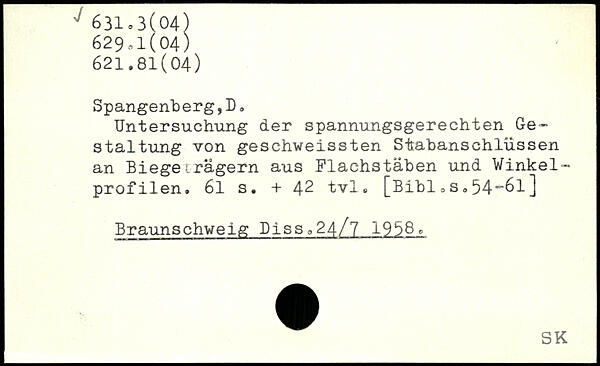 Untersuchung der spannungsgerechten Gestaltung von geschweissten Stabanschlüssen an Biege -.rägern aus Flachstäben und Vinkelprofilen. 6l s. +42 tvl.