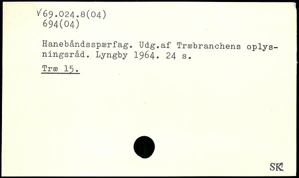 Hanebåndsspærfag. Udg.af Træbranchens oplysningsråd. Lyngby 1964.