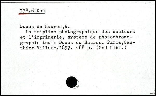 Ducos du Hauron,A. La triplice photographique des couleurs et 1'imprimerie, système de photochromographie Louis Ducos du Hauron.