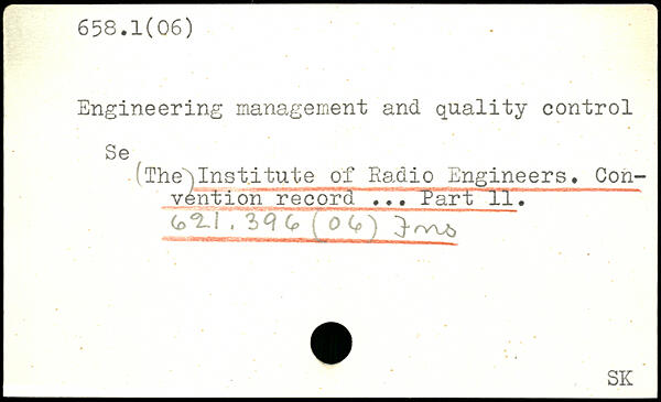 Engineering management and quality control Se. (The)Institute of Radio Engineers. Con-ventiorT rëcôrcTT. TTärT IT. (oTI 3-^