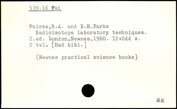 Faires ,'RnAu and Br,Ho Parks Radioisotope laboratory techniques0