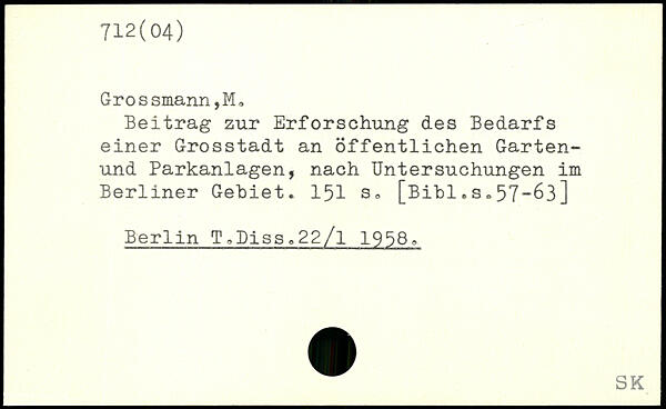 Beitrag zur Erforschung des Bedarfs einer Grosstadt an öffentlichen Garten-und Parkanlagen, nach Untersuchungen im Berliner Gebiet.