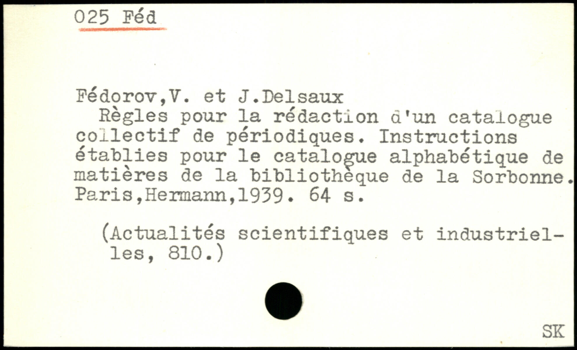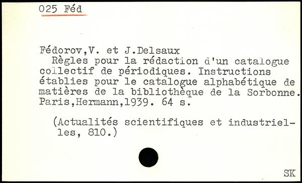 Règles pour la rédaction d’un catalogue collectif de périodiques. Instructions établies pour le catalogue alphabétique de matières de la bibliothèque de la Sorbonne.