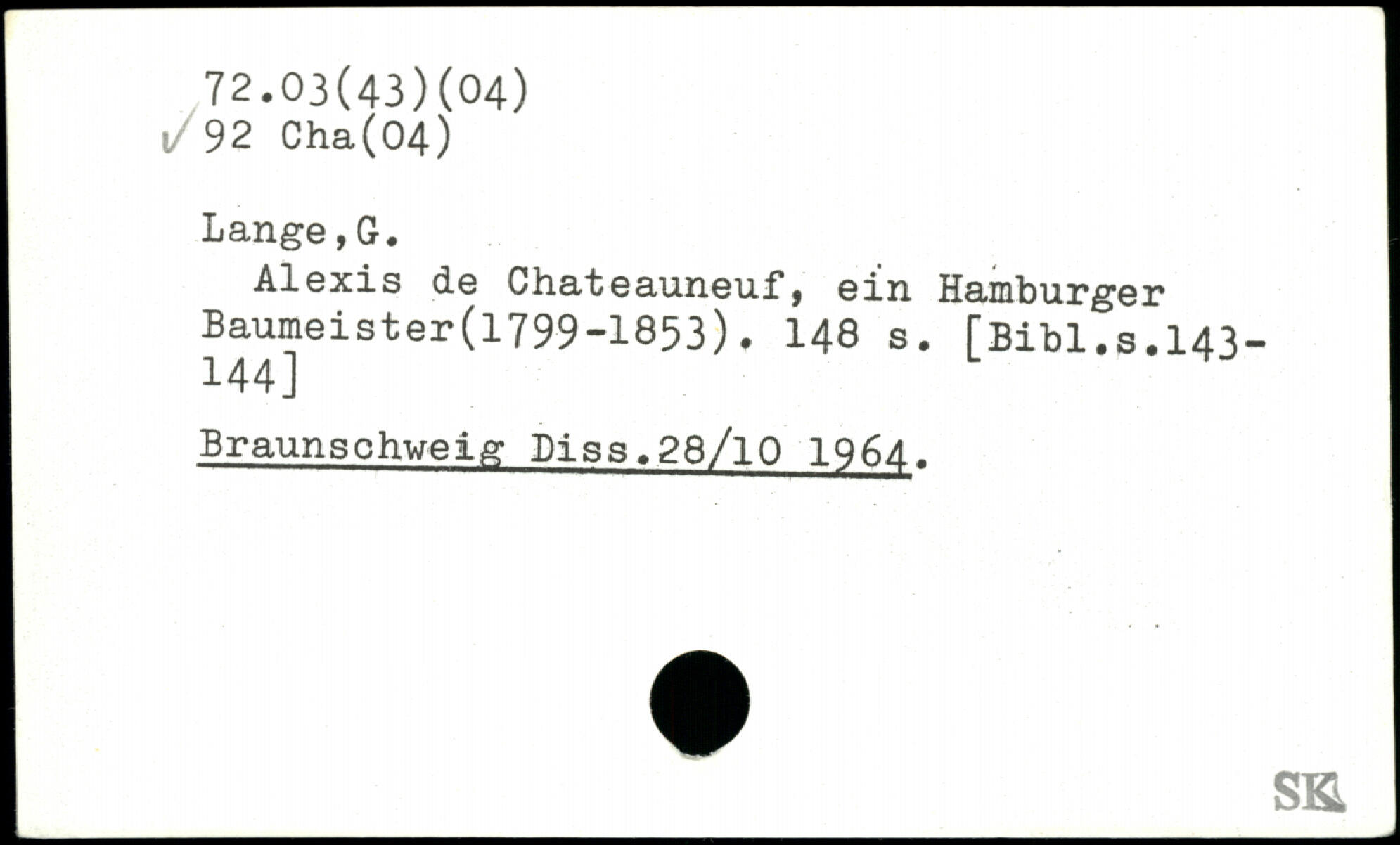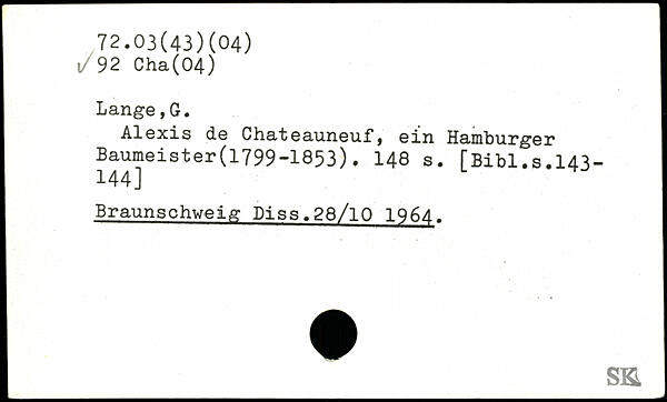 Alexis de Chateauneuf, ein Hamburger Baumeister(1799-1853). I