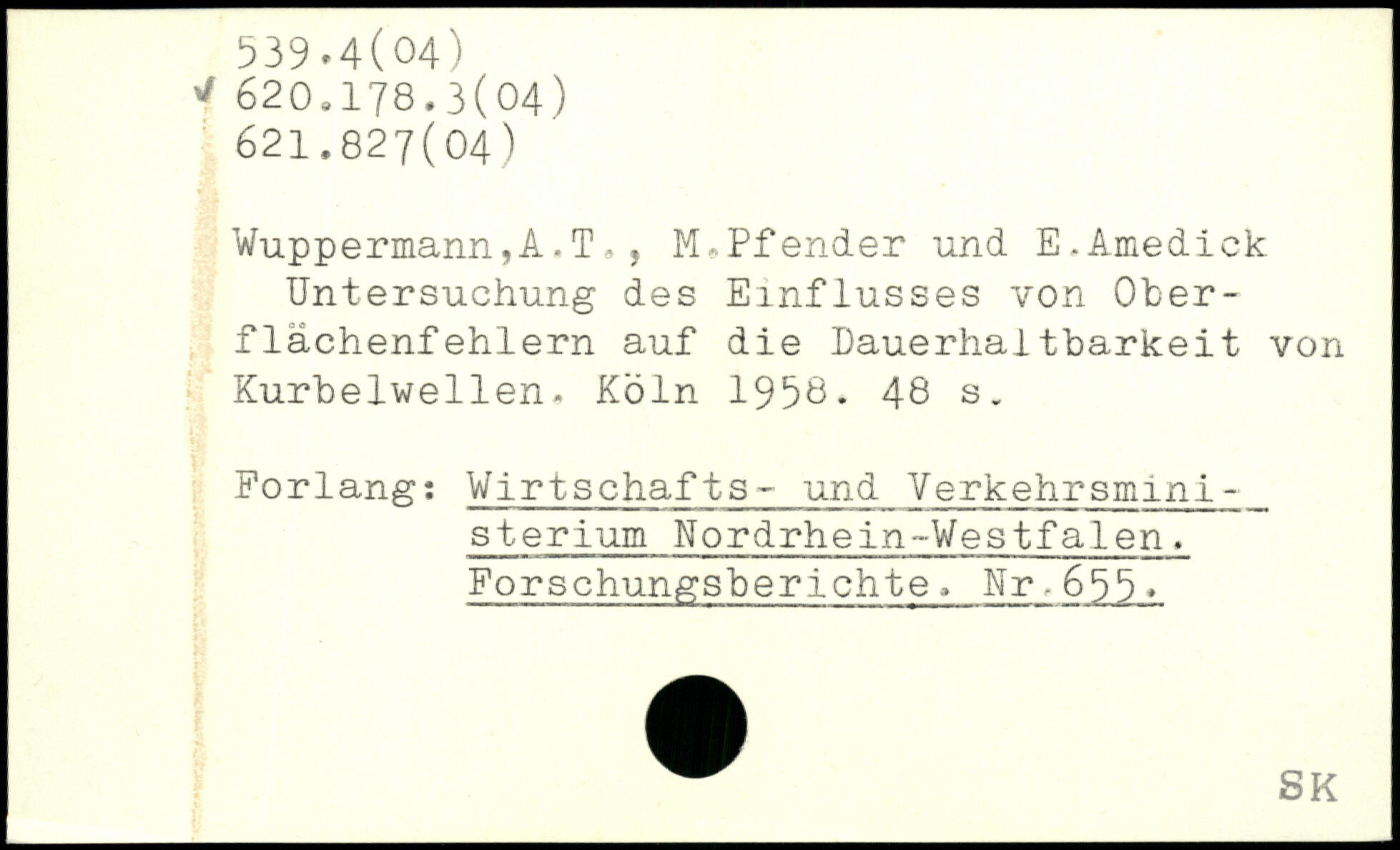 Wuppermann,A.T,, M.Pfender und E.Amedick Untersuchung des Einflusses von Ober-flächenfehlern auf die Dauerhaitbarkeit von Kurbelwellen.