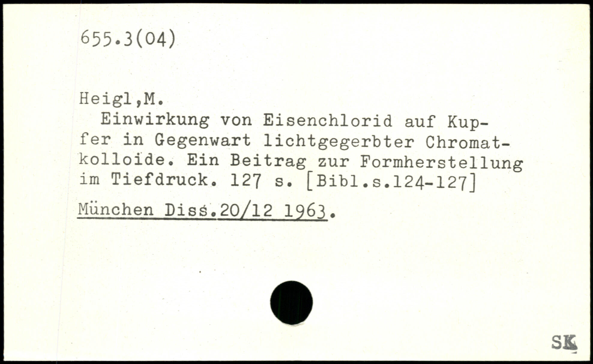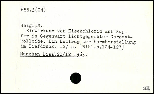 Einwirkung von Eisenchlorid auf Kupfer in Gegenwart lichtgegerbter Chromatkolloide. Ein Beitrag zur Formherstellung im Tiefdruck.