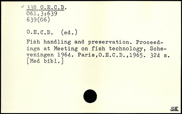 Fish handling and preservation. Proceedings at Meeting on fish technology, Sche-veningen 1964. Paris,0.E.C.D.,1965.
