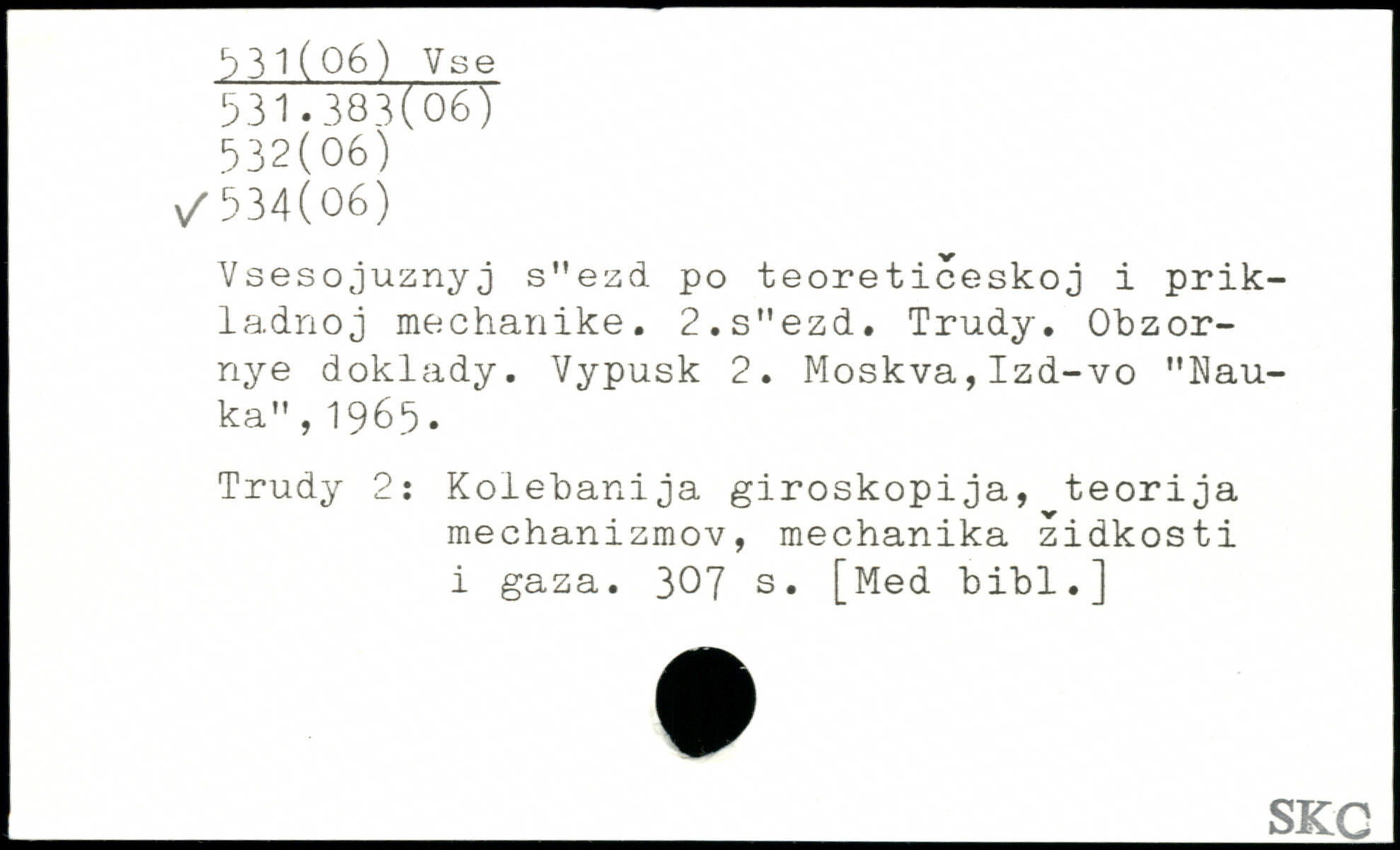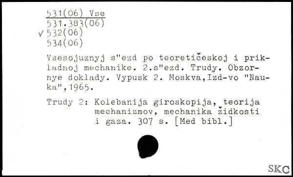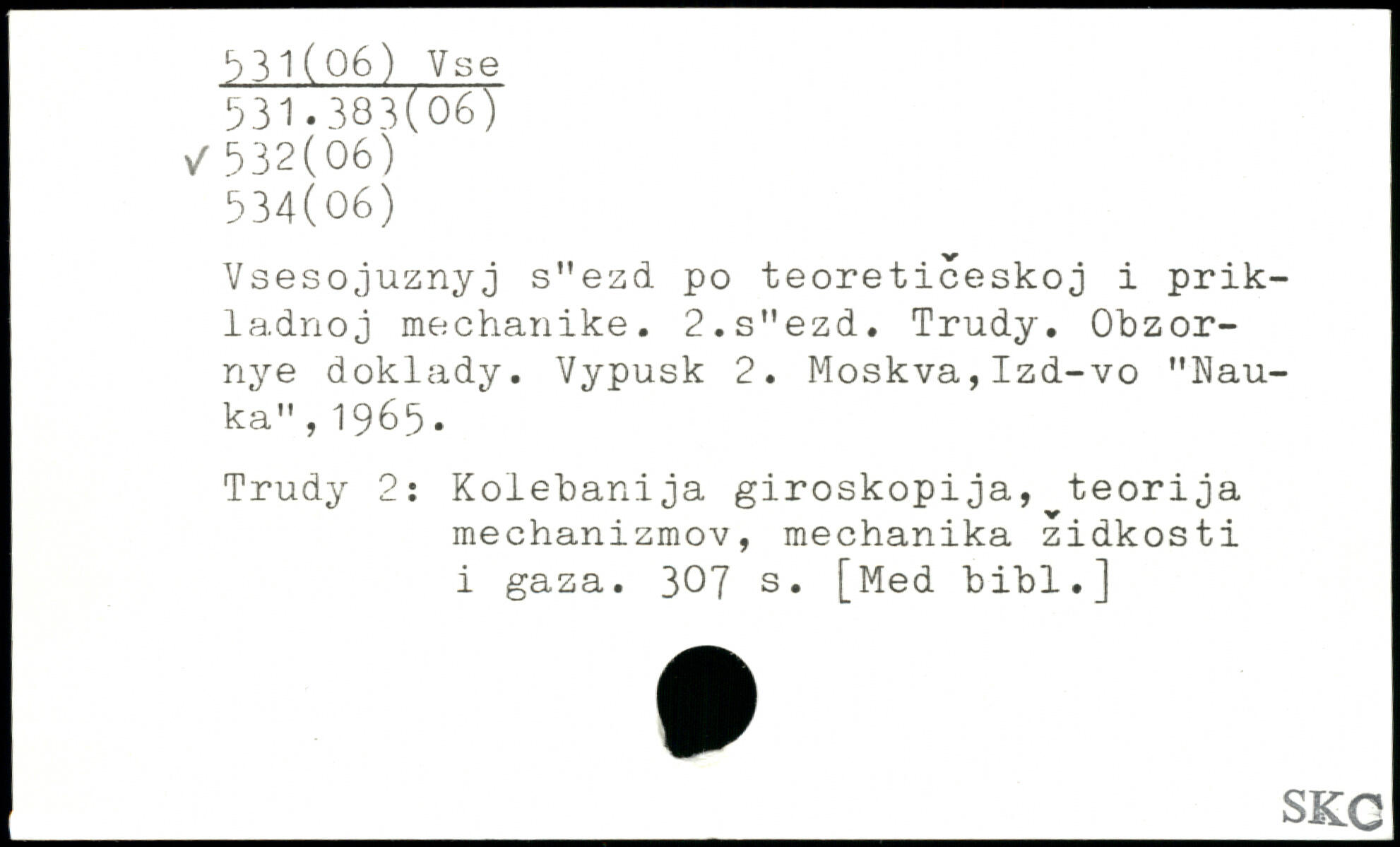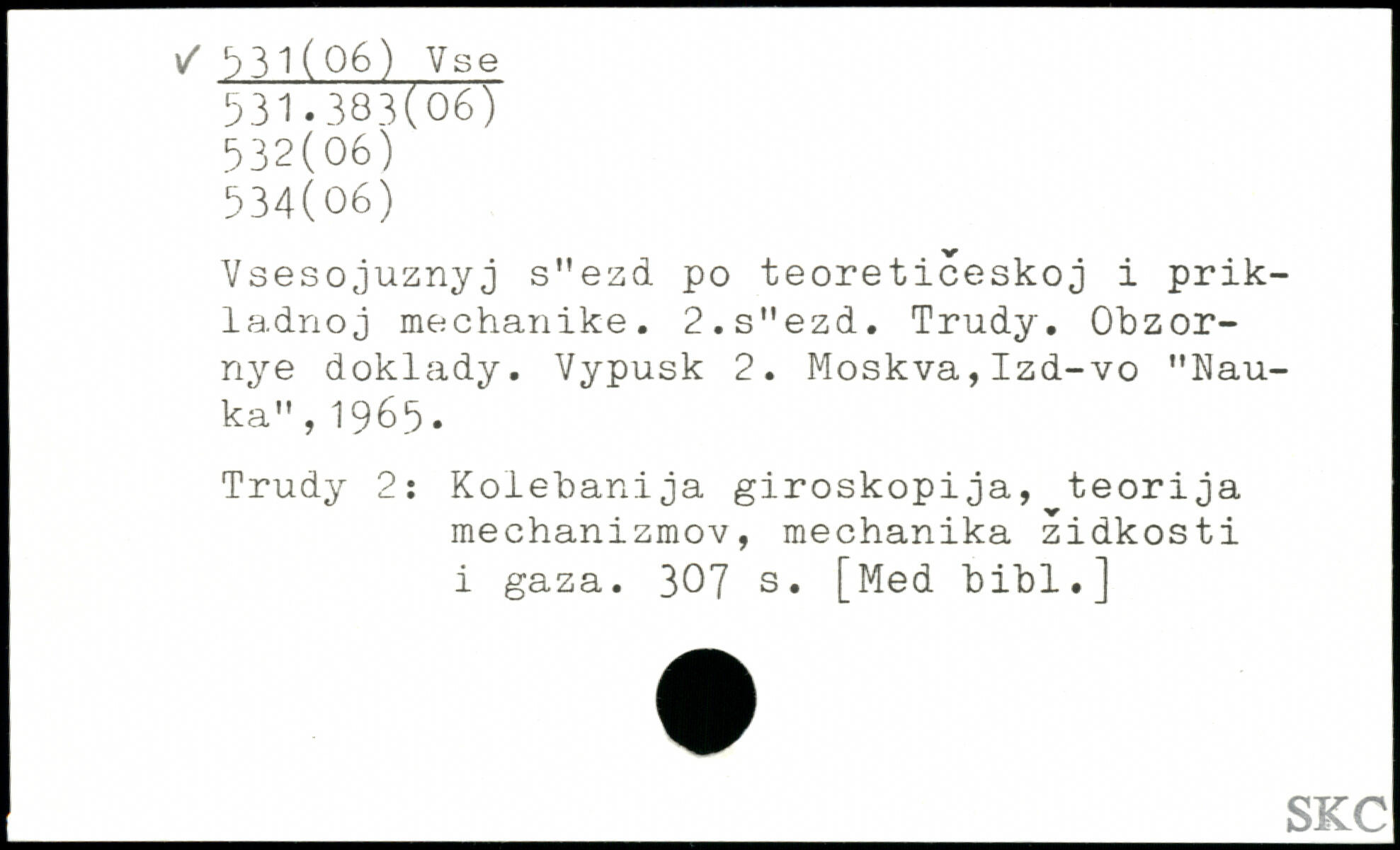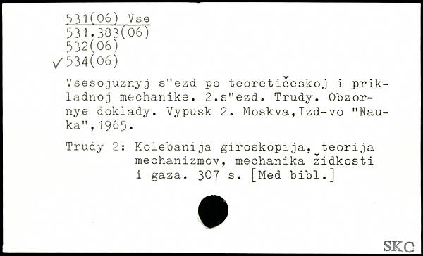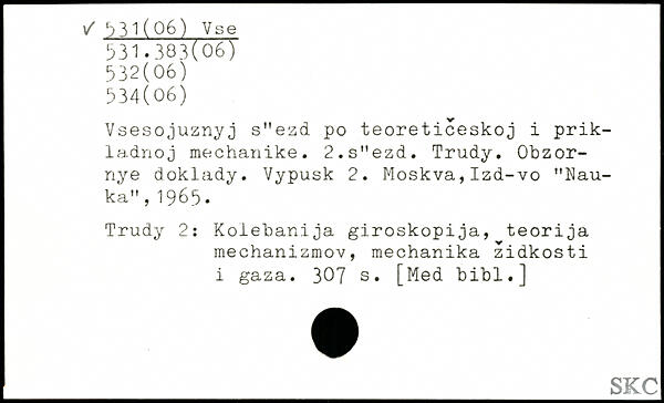 Vsesojuznyj s"ead po teoreticeskoj i prik-ladnoj mechanike. 2.s"ezd. Trudy. Obzor-nye doklady. Vypusk 2. Moskva,Izd-vo "Nau-ka",1965. Trudy 2: Kolebanija giroskopija, teorija mechanizmov, mechanika zidkosti i gaza.