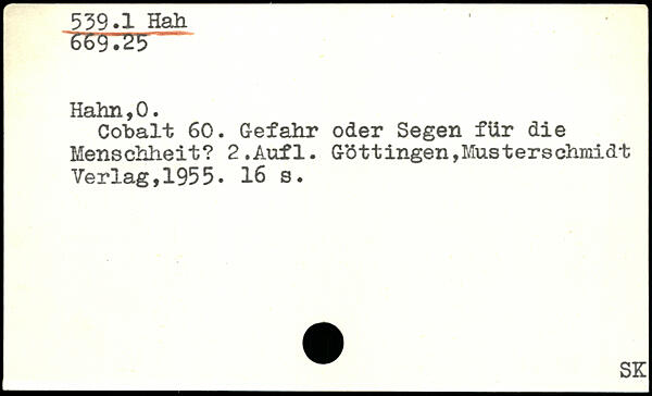 Hahn,0. Cobalt 60. Gefahr oder Segen für die Menschheit?