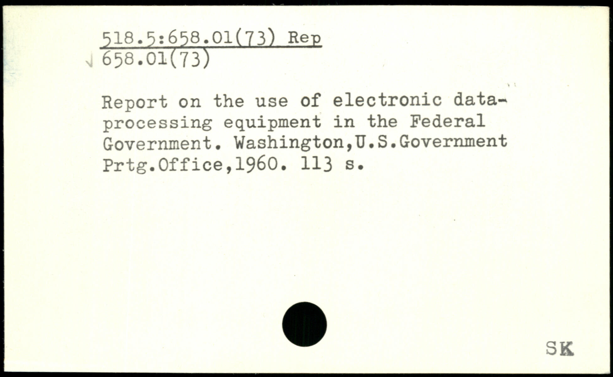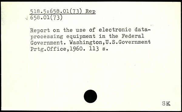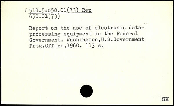 Report on the use of electronic data, processing equipment in the Federal Government. Washington,TJ.S.Government Prtg.Office,1960.