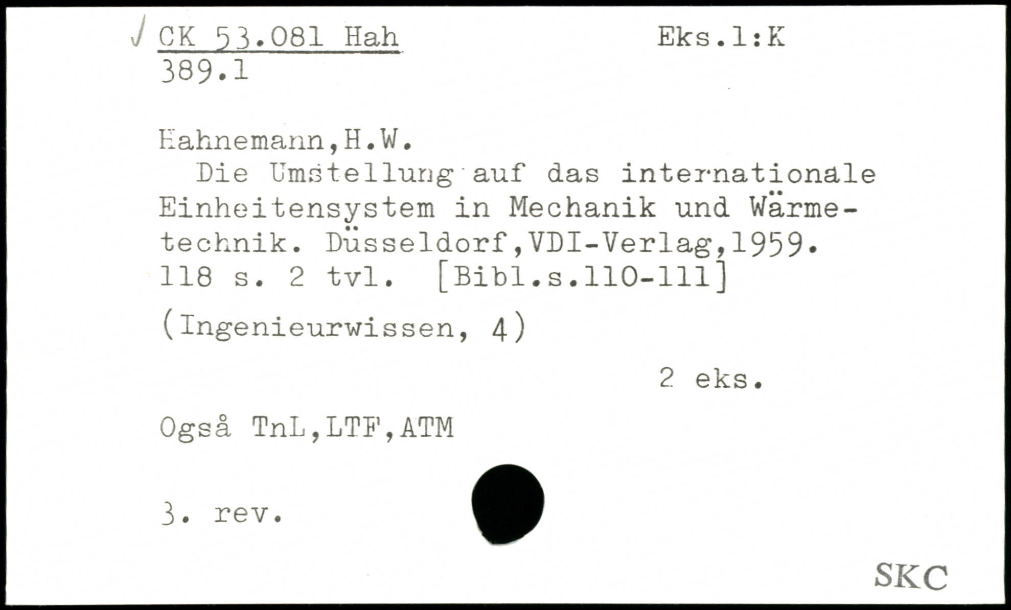 Die Umstellung auf das internationale Einheitensystem in Mechanik und Wärmetechnik.