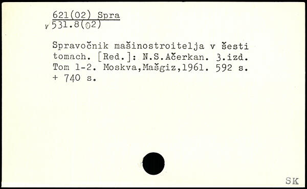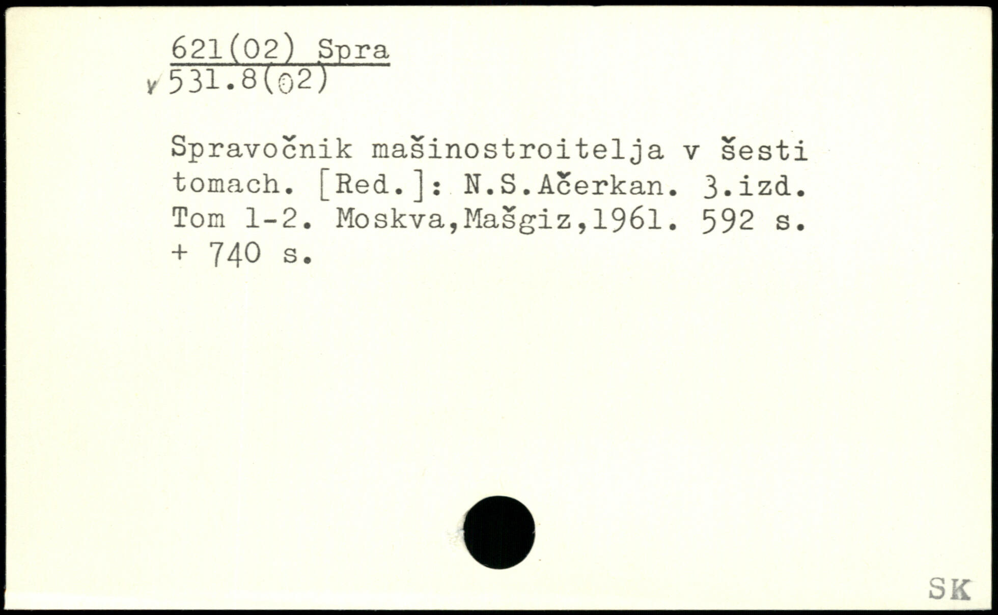 Spravocnik masinostroitelja v sesti tomach. [Red.]: N.S.Acerkan. 3.izd. Tom 1-2.