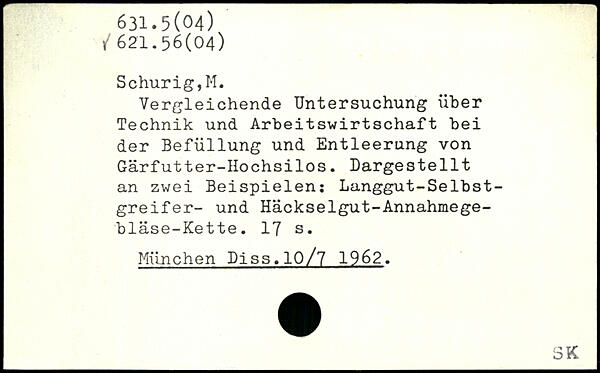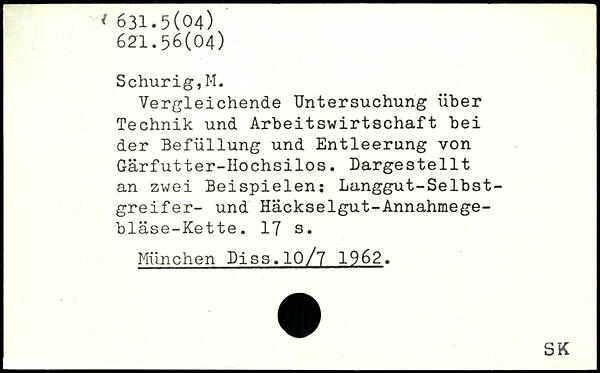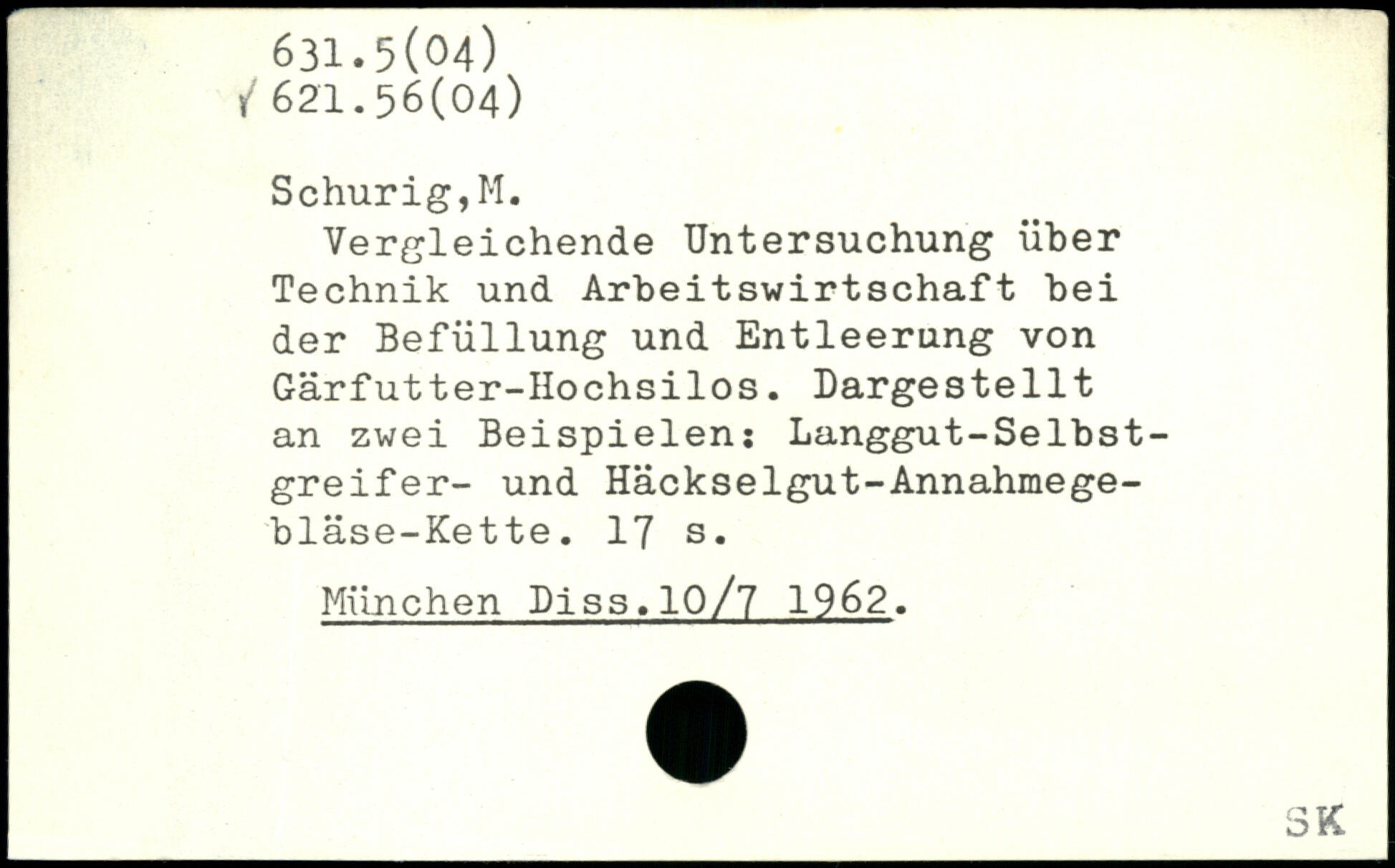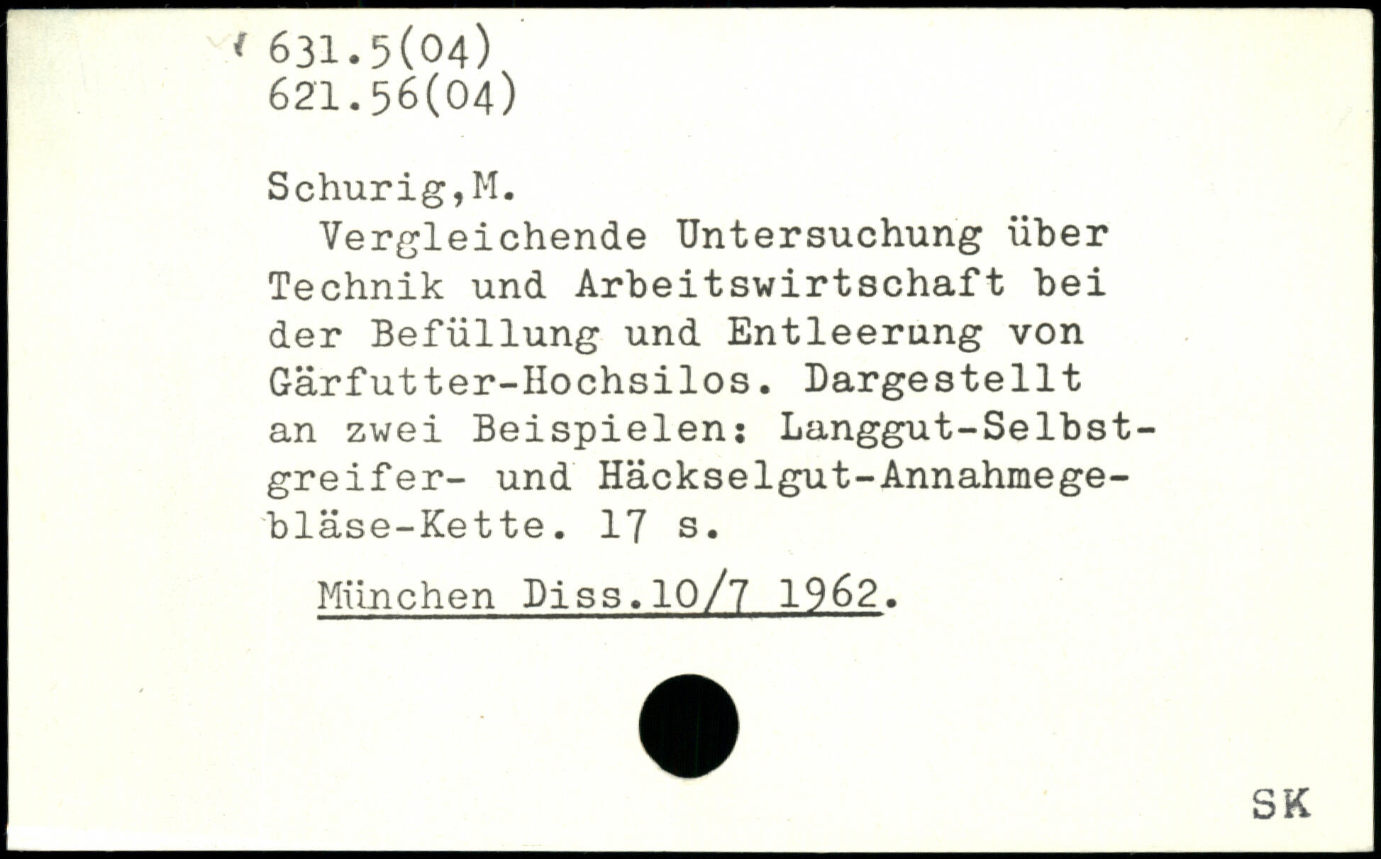 Vergleichende Untersuchung über Technik und Arbeitswirtschaft bei der Befüllung und Entleerung von Gärfutter-Hochsilos. Dargestellt an zwei Beispielen: Langgut-Selbstgreifer- und Häckselgut-Annahmege-bläse-Kette.