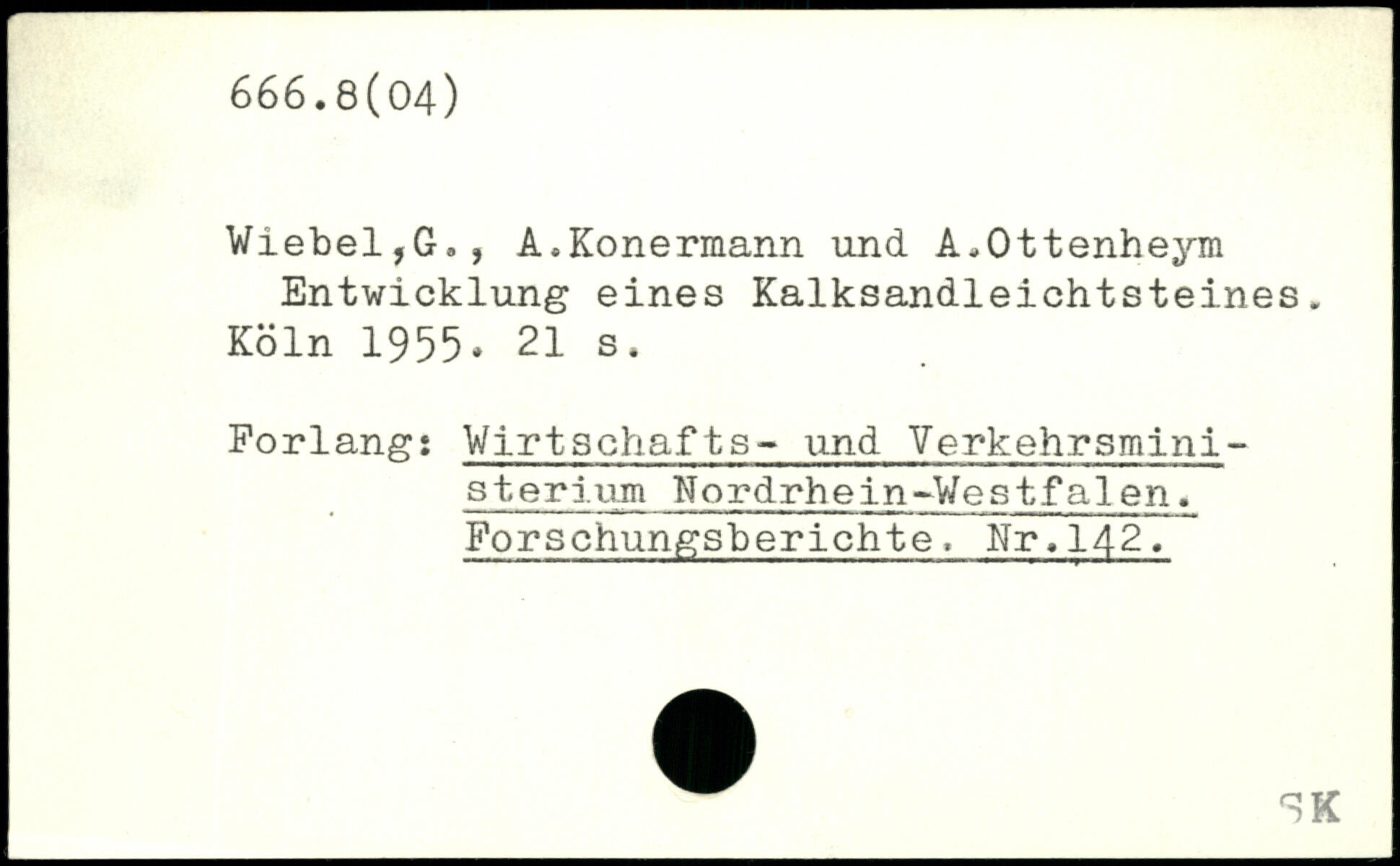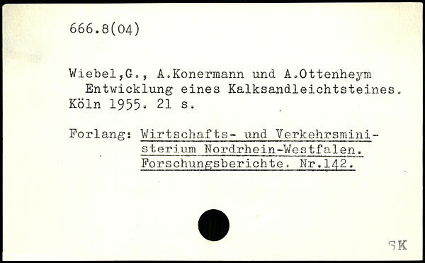 Wiebel,G,, A.Konermann und A.Ottenheym Entwicklung eines Kalksandleichtsteines.
