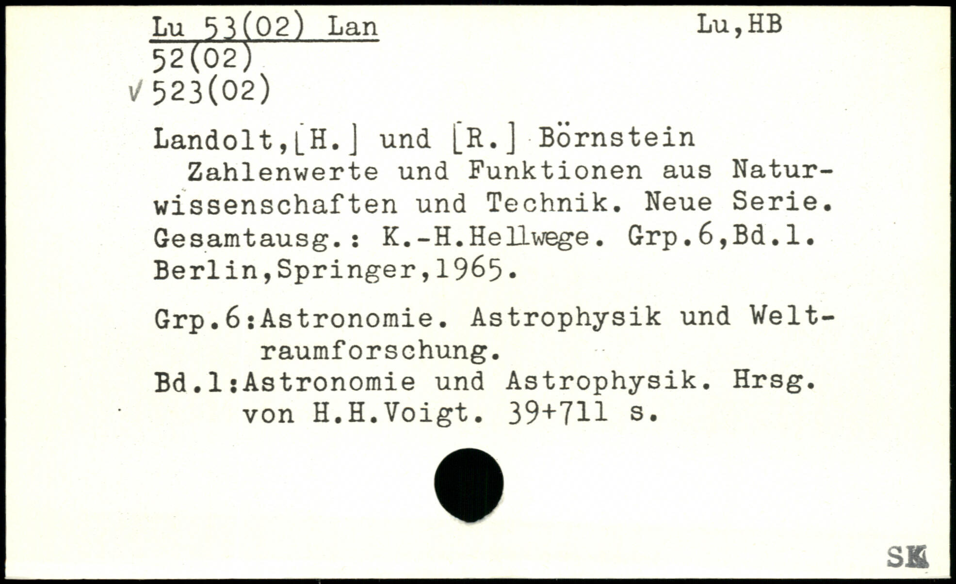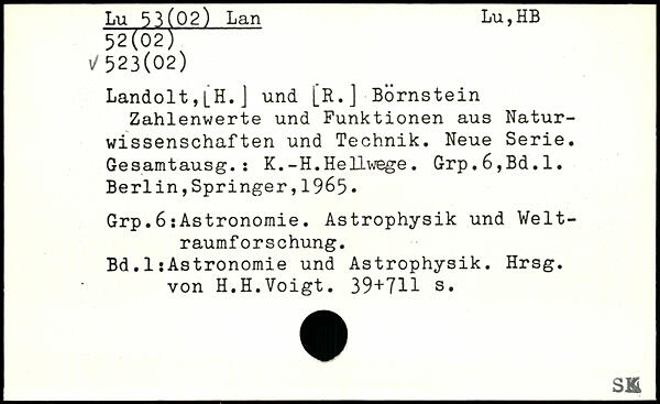 Landolt,[H.] und [R.J Börnstein Zahlenwerte und Funktionen aus Naturwissenschaften und Technik. Neue Serie. Gesamtausg.: K.-H.Hellwege. Grp.6,Bd.l.