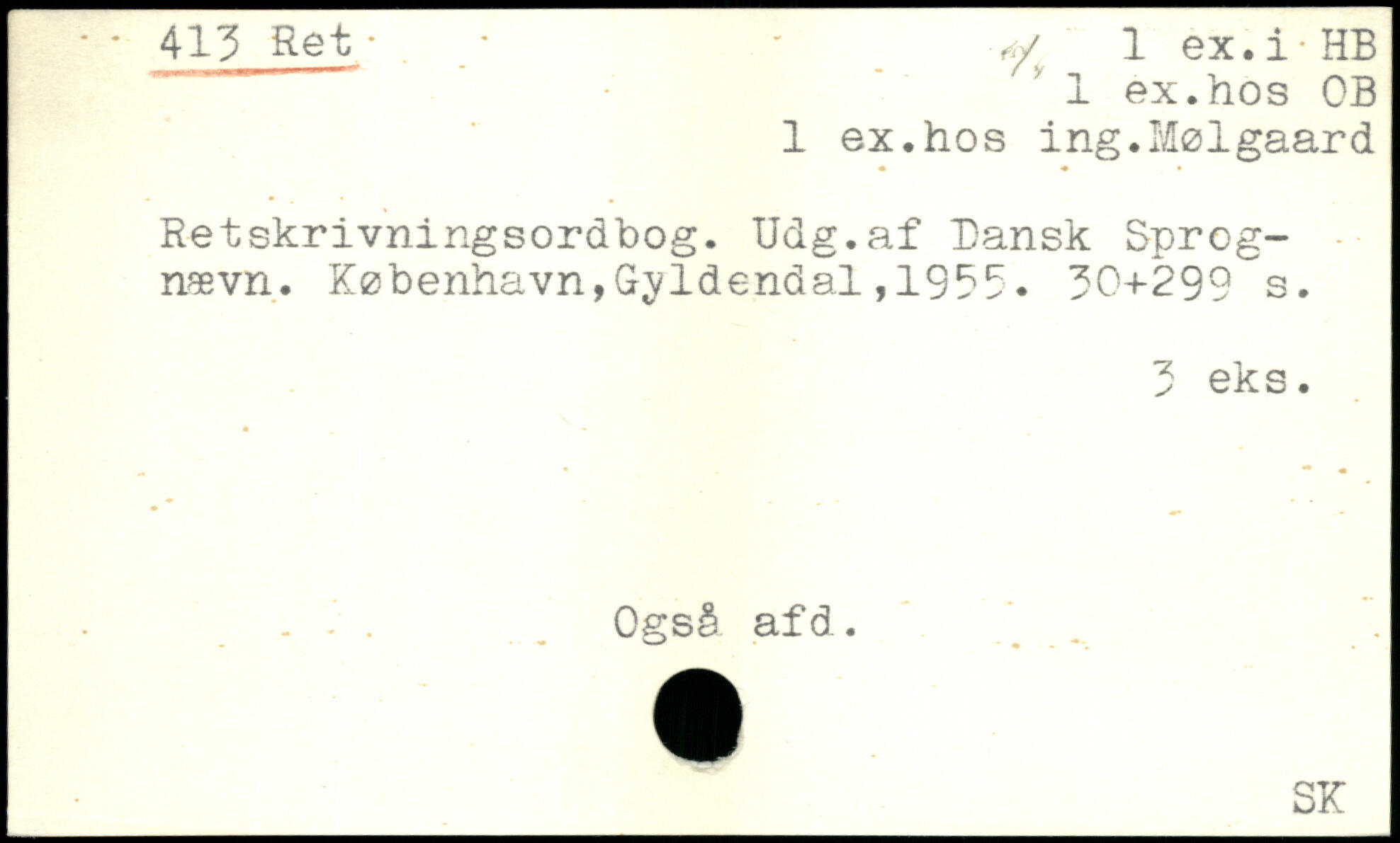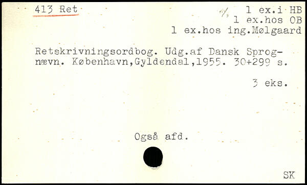 1 ex.hos OB 1 ex.hos ing.Mølgaard Retskrivningsordbog. Udg.af Dansk Sprognævn.