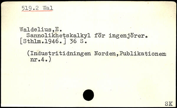 Sannolikhetskalkyl för ingenjörer. [Sthlm.1946.]