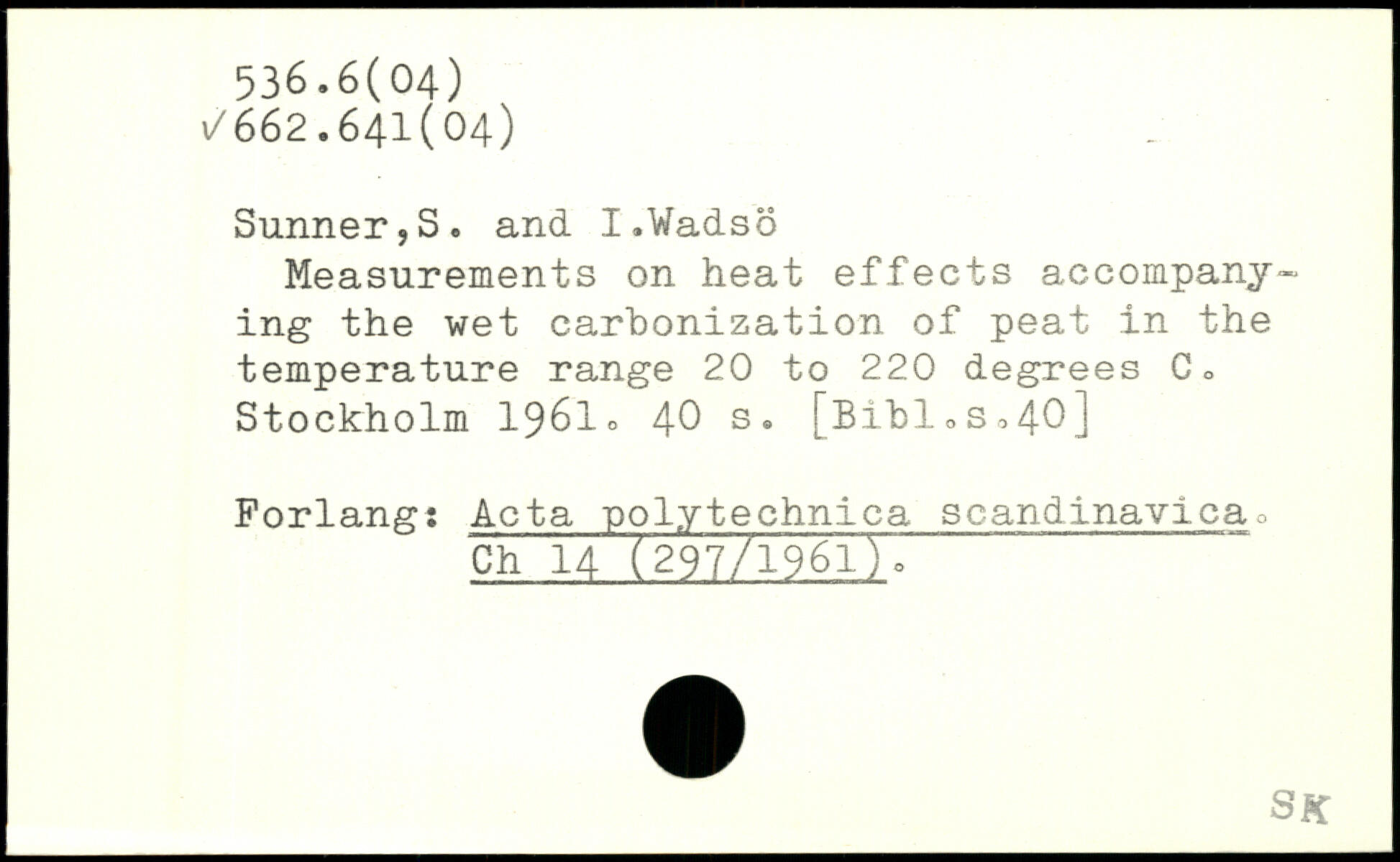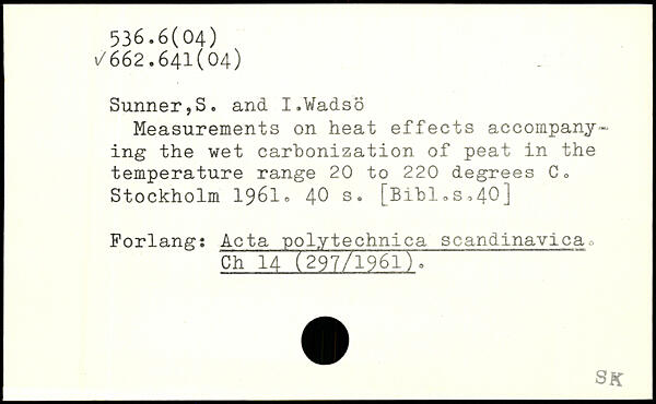 Measurements on heat effects accompanying the wet carbonization of peat in the temperature range 20 to 220 degrees Co