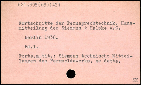 Fortschritte der Fernsprechtechnik. Hausmitteilung der Siemens & Halske