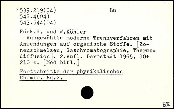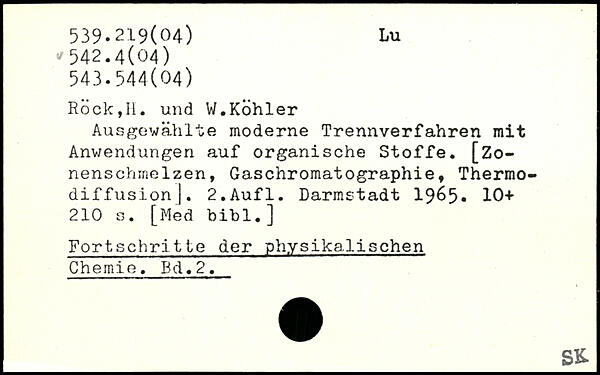 Ausgewählte moderne Trennverfahren mit Anwendungen auf organische Stoffe. [Zo-nenschrnelzen, Gaschromatographie, Thermodiffusion).