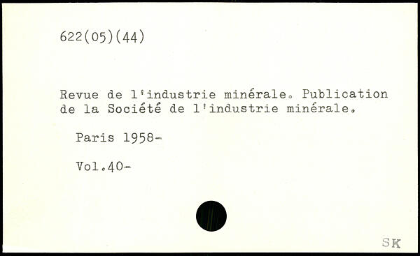 Revue de 1.industrie minérale. Publication de la Société de l'industrie minérale