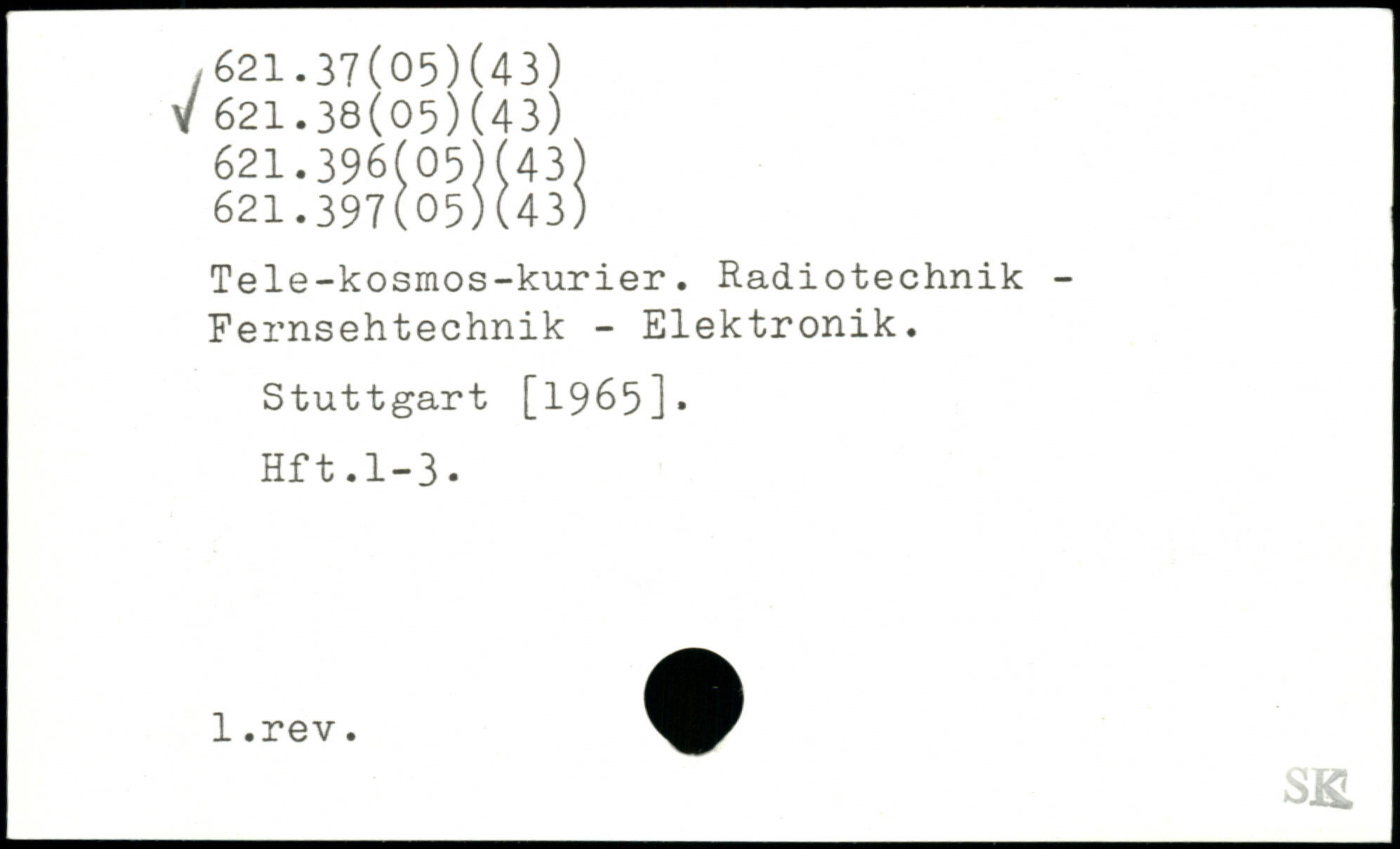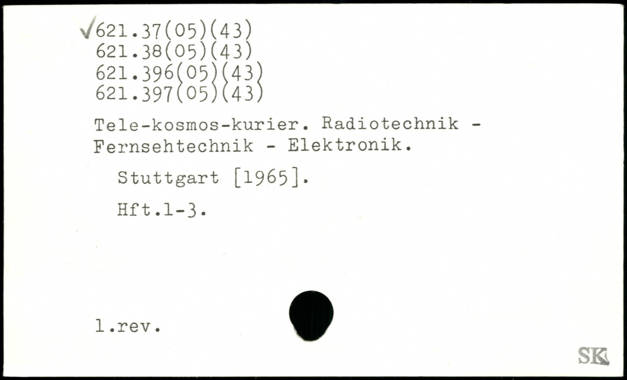 Tele-kosmos-kurier. Radiotechnik -Fernsehtechnik - Elektronik.