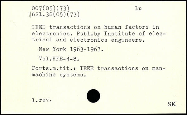 IEEE transactions on human factors in electronics.