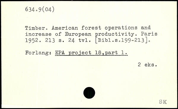 Timber. American forest operations and increase of European productivity.