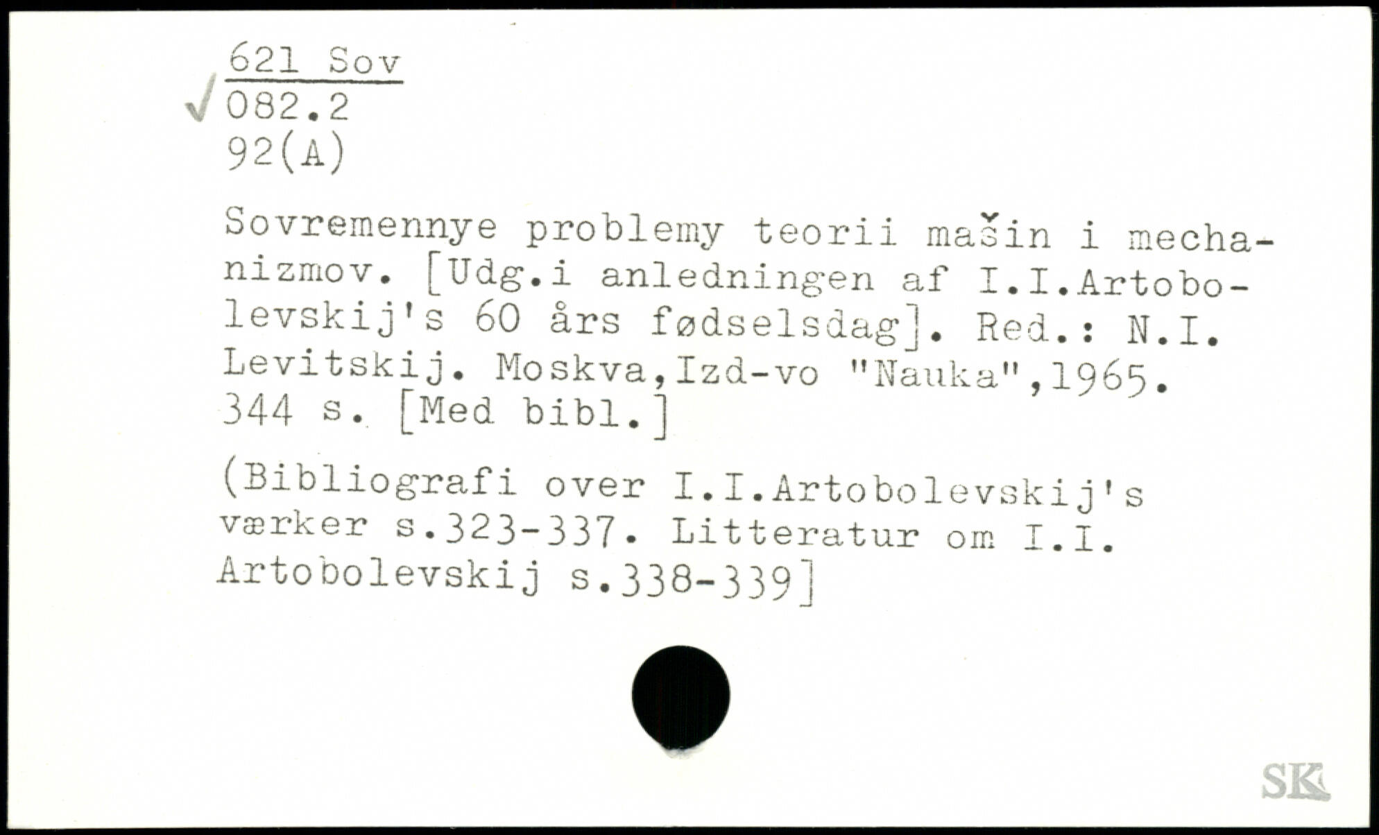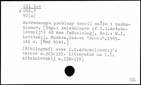 Sovremennye problemy teorii masin i mecha-nizraov. [Udg.i anledningen af I.I.Artobo-levskij's 60 års fødselsdag]. Red.: N.I. Levitskij. Moskva,Izd-vo "Nauka",196S.
