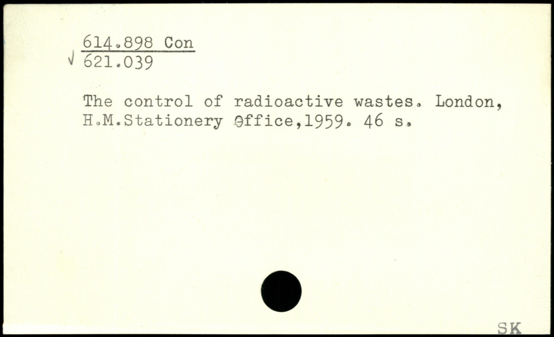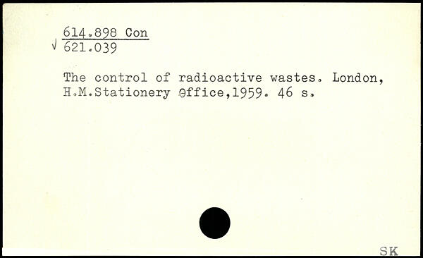The control of radioactive wastes. London, H.M.Stationery Office,1959.
