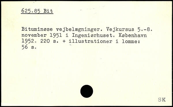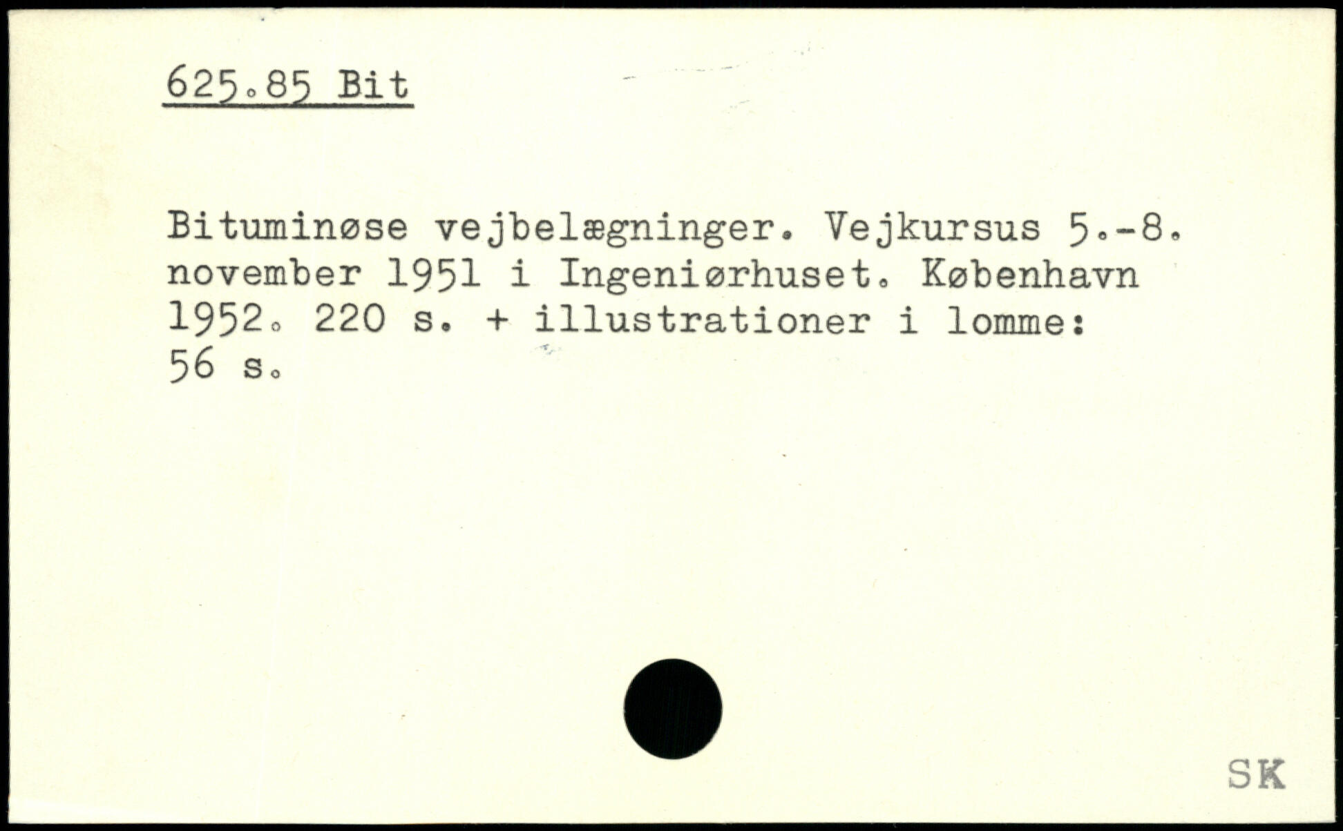 Bituminøse vejbelægninger. Vejkursus 5,-8. november 1951 i Ingeniørhuset.