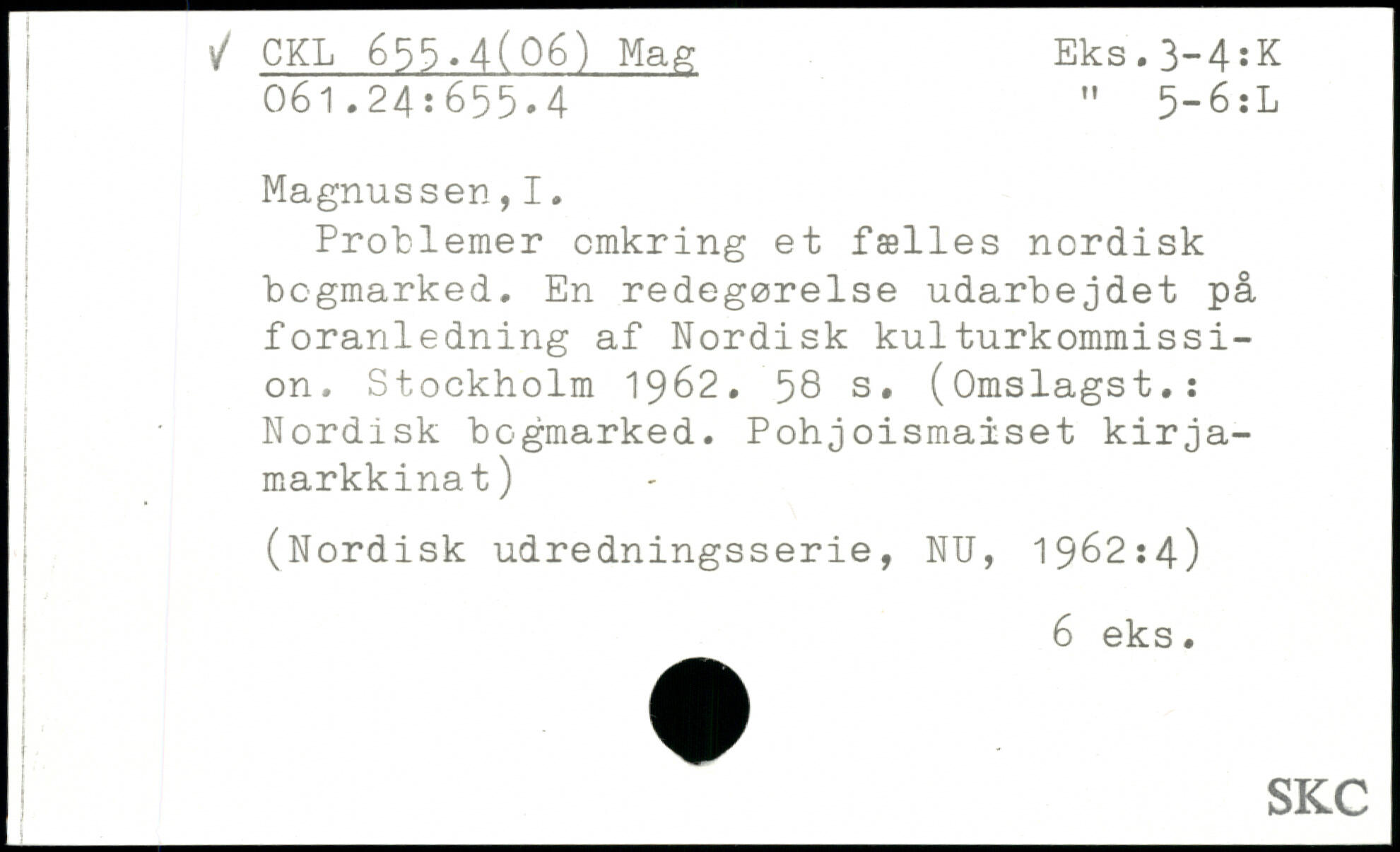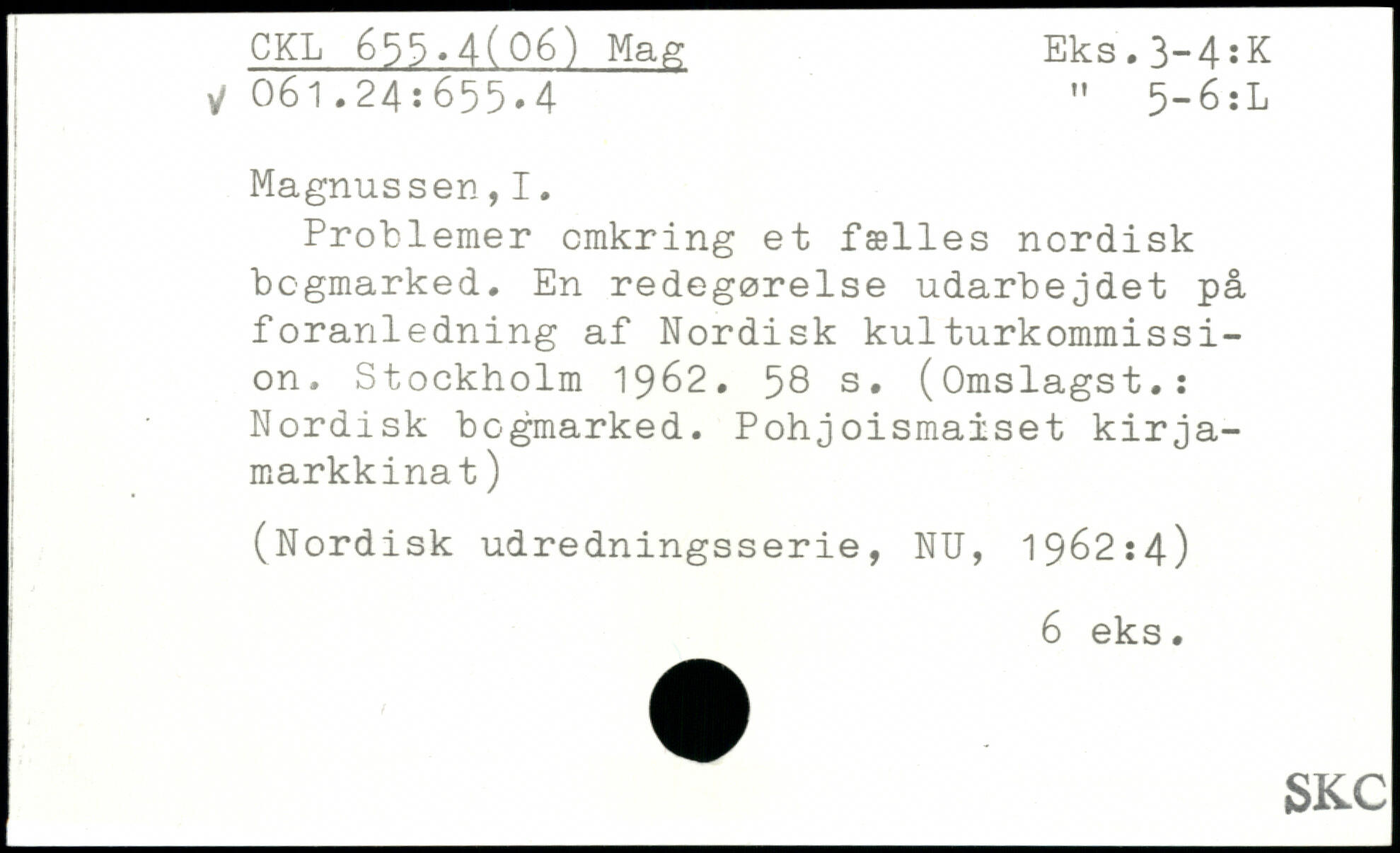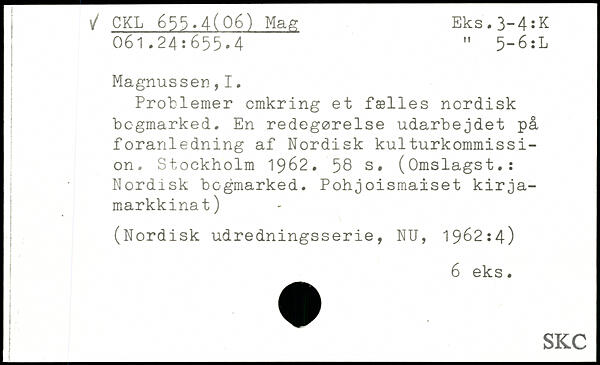 Problemer omkring et fælles nordisk bogmarked. En redegørelse udarbejdet på foranledning af Nordisk kulturkommission.