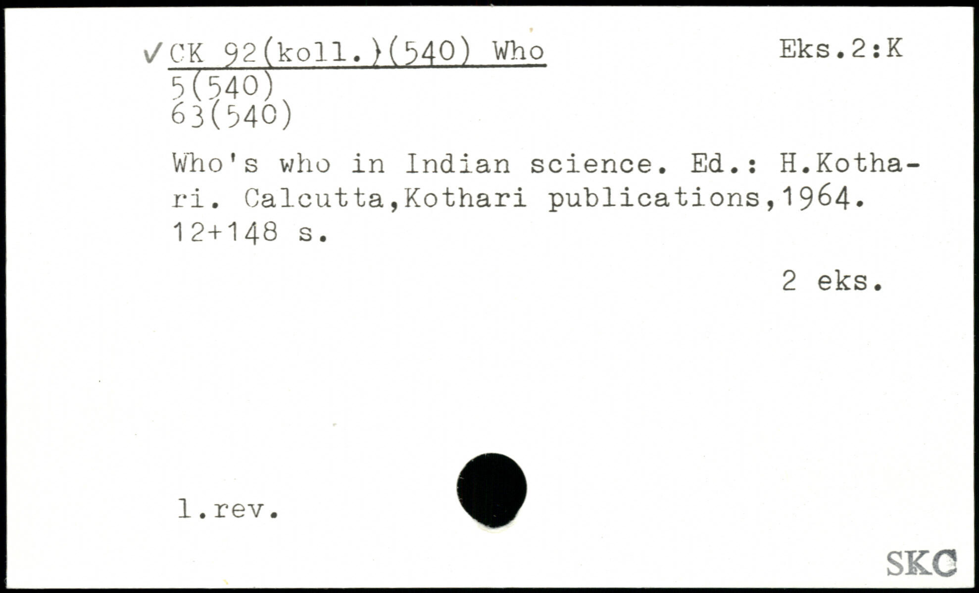 Who's who in Indian science. Ed.; H.Kotha-ri.
