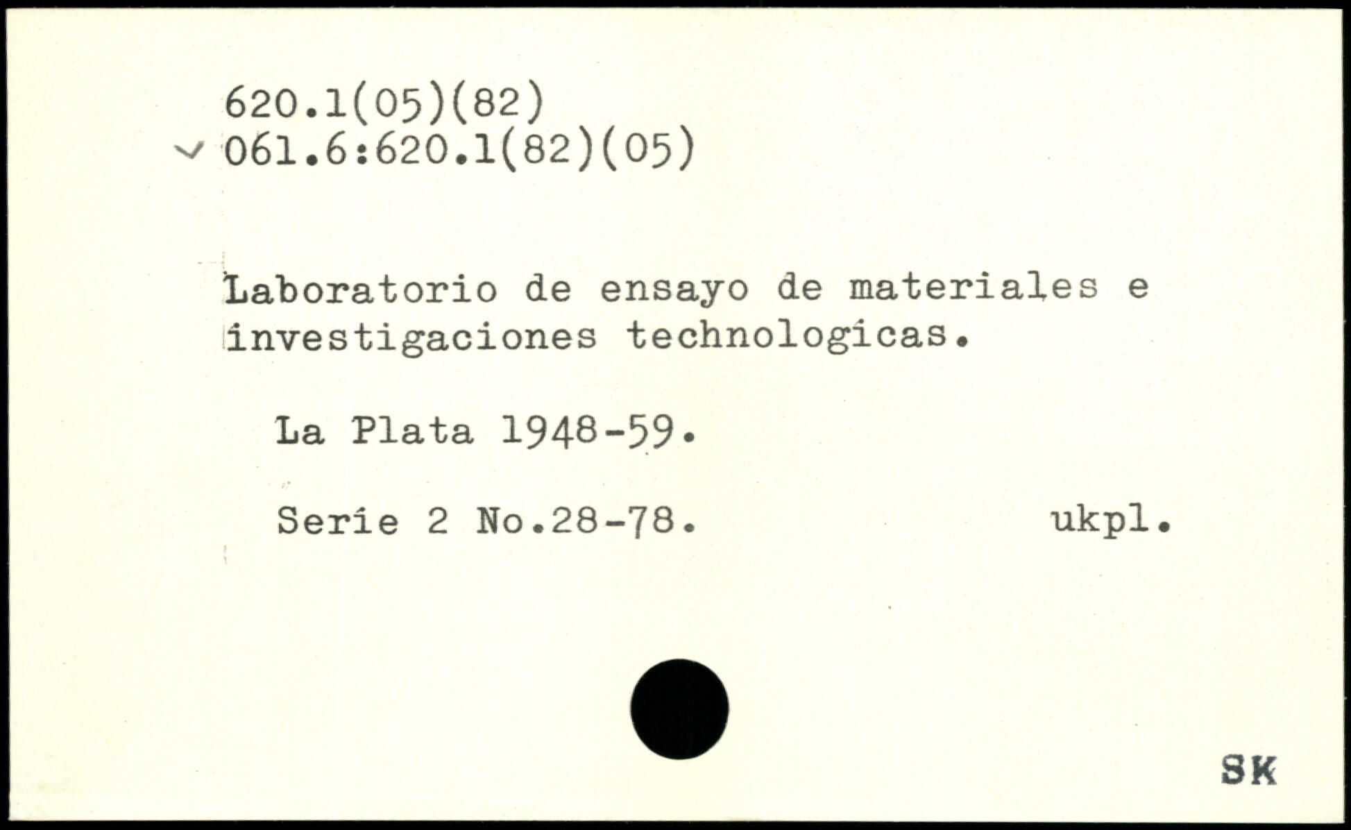 Laboratorio de ensayo de materiales e investigaciones technologicas. La Plata 1948-59. Serie 2 No.28-78. ukpl.