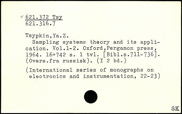 Tsypkin,Ya.Z. Sampling systems theory and its application.