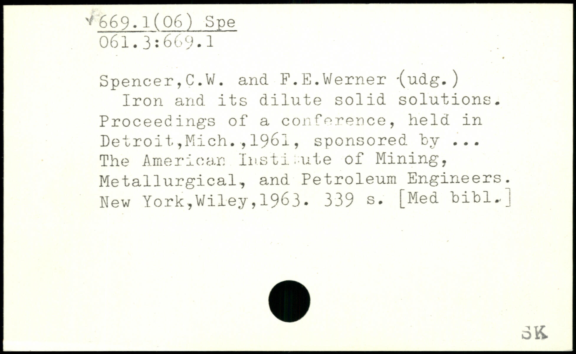 Spencer,C.W. and F.E.Werner {udg.) Iron and its dilute solid solutions. Proceeding's of a conference, held in