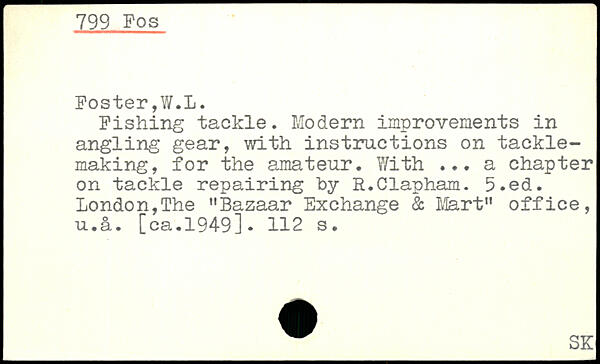 Pishing tackle. Modern improvements in angling gear, with instructions on tacklemaking, for the amateur. With ... a chapter on tackle repairing by R.Clapham.
