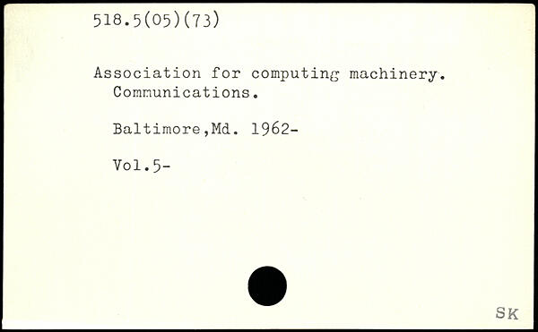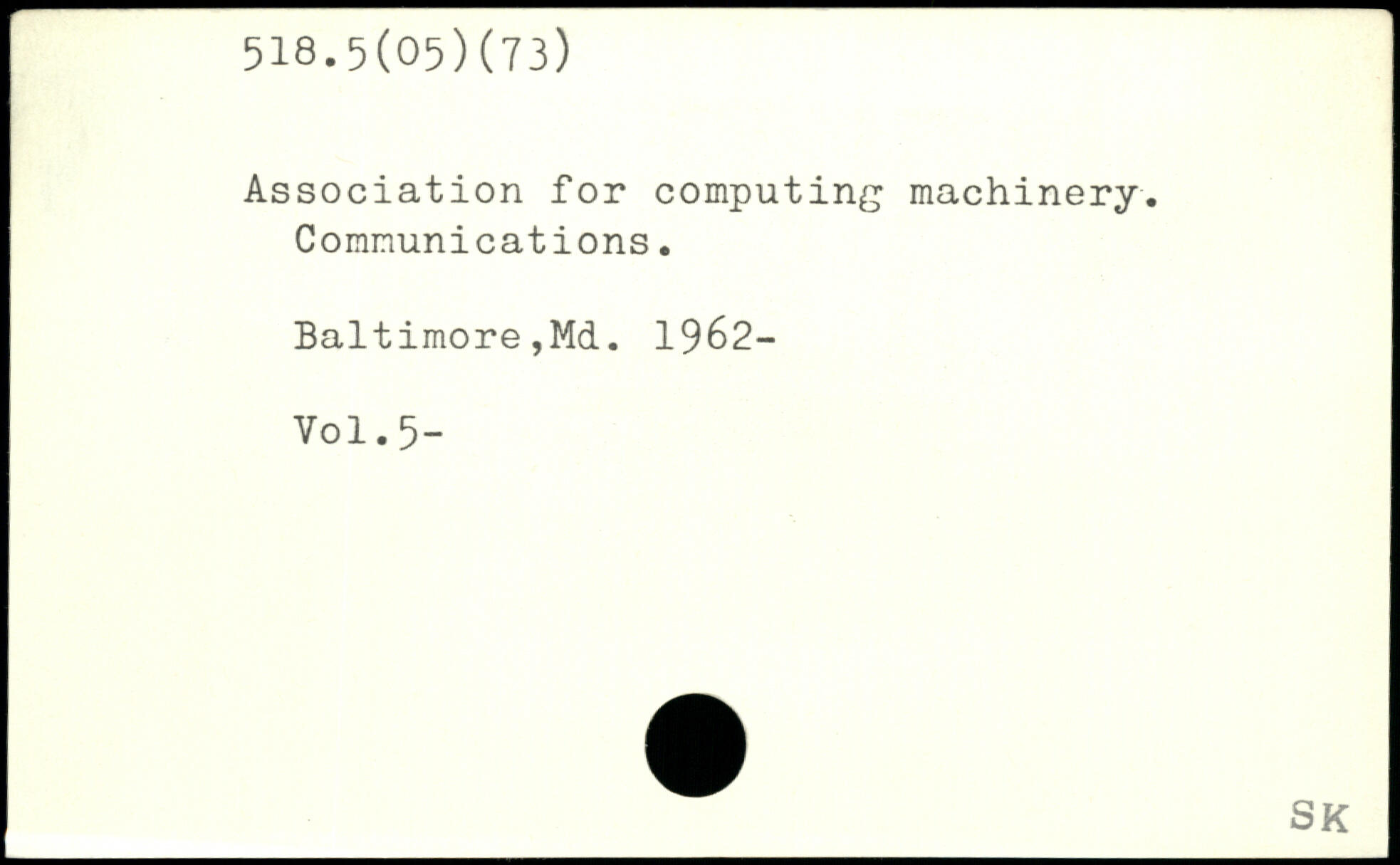 Association for computing machinery. Communications. Baltimore,Md. 1962-