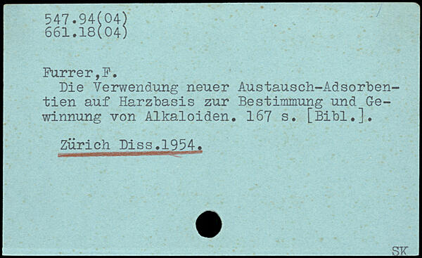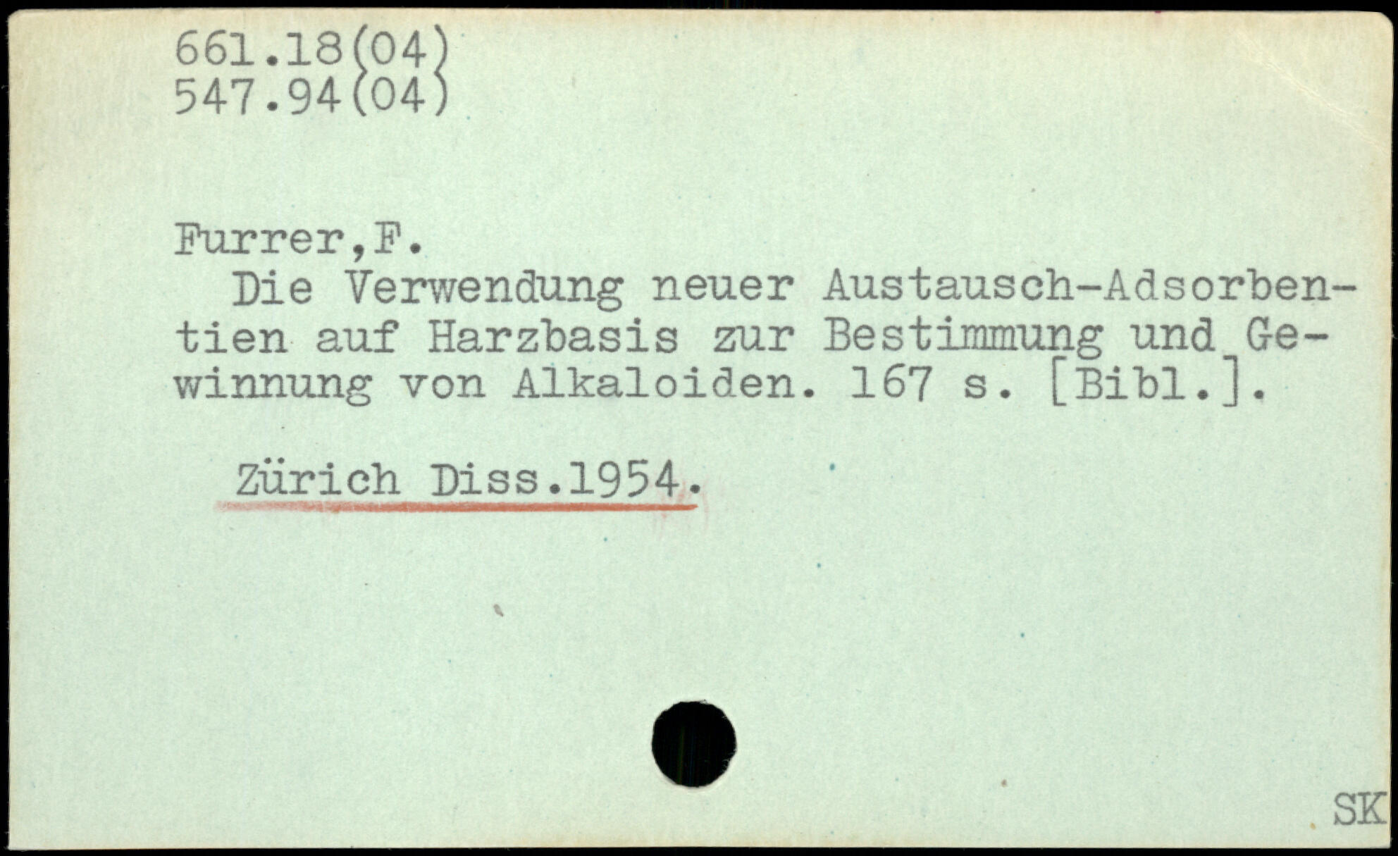 Die Verwendung neuer Austausch-Adsorben-tien auf Harzbasis zur Bestimmung und Gewinnung von Alkaloiden.