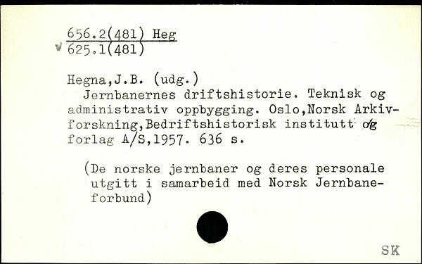 Jernbanernes driftshistorie. Teknisk og administrativ oppbygging. Oslo,Norsk Arkivforskning, Bedriftshistorisk institutt- c/g forlag A/s,1957-