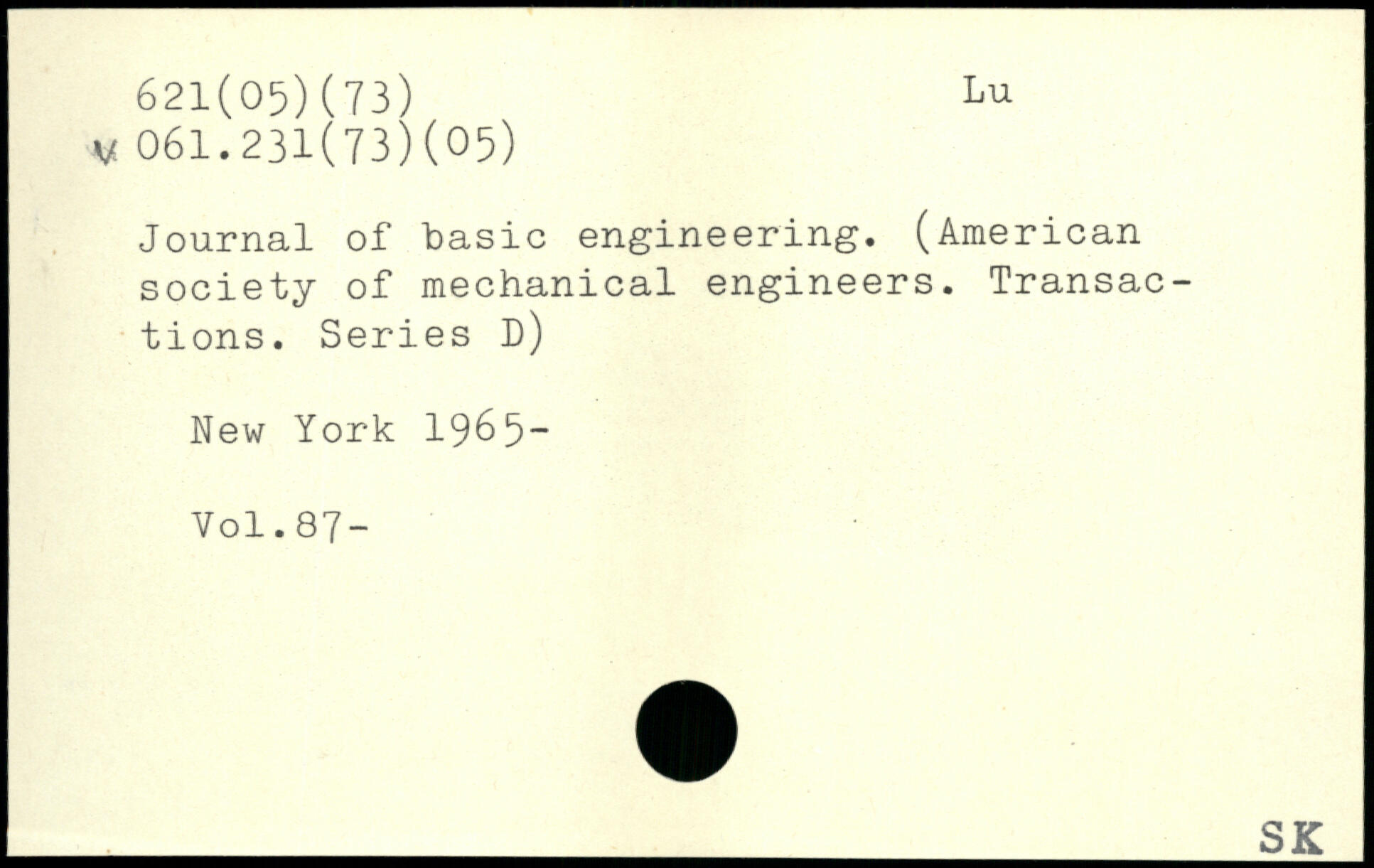 Journal of basic engineering. (American society of mechanical engineers. Transactions. Series D)