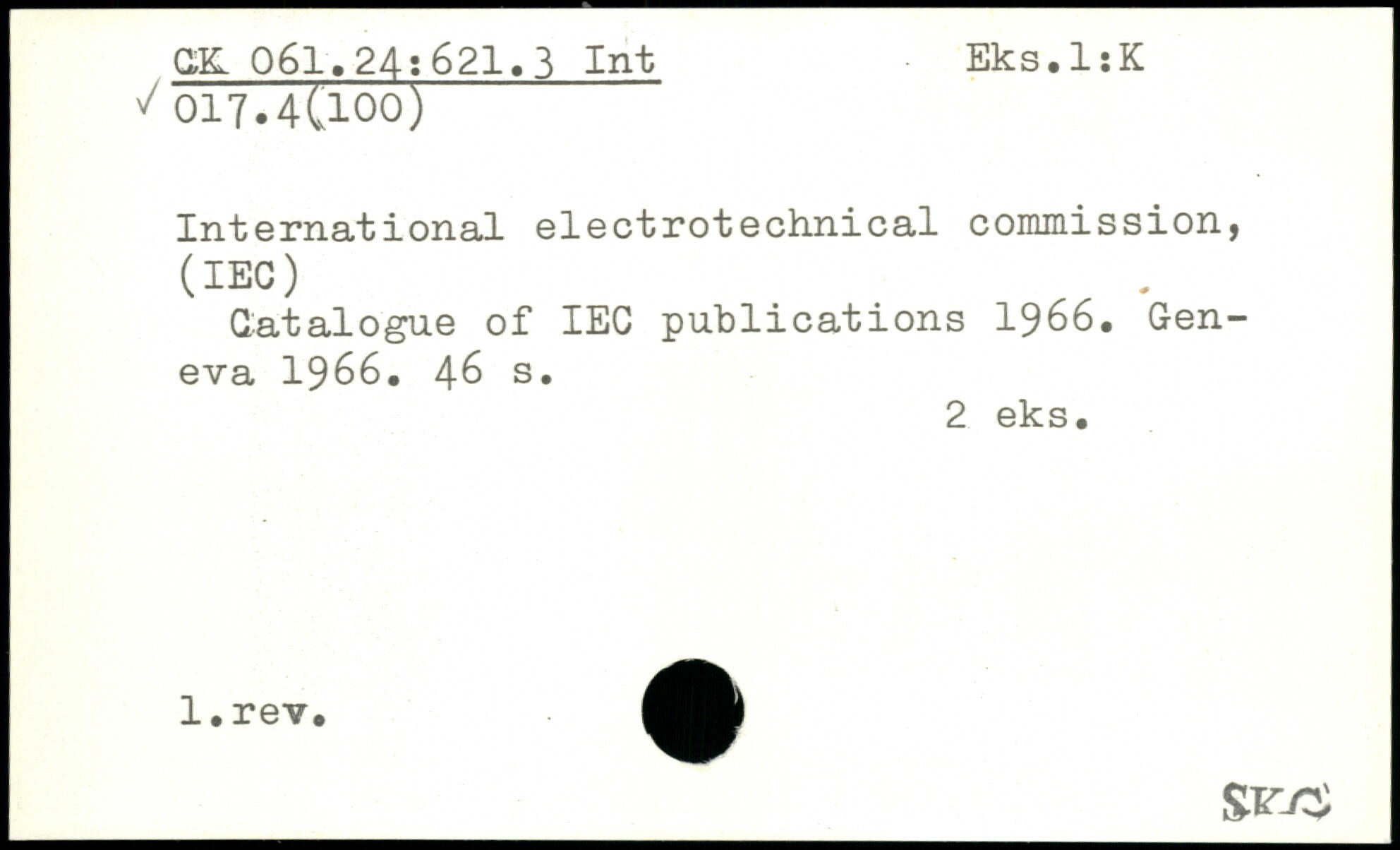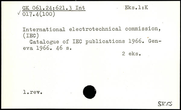 International electrotechnical commission, (IEC) Catalogue of IEC publications 1966