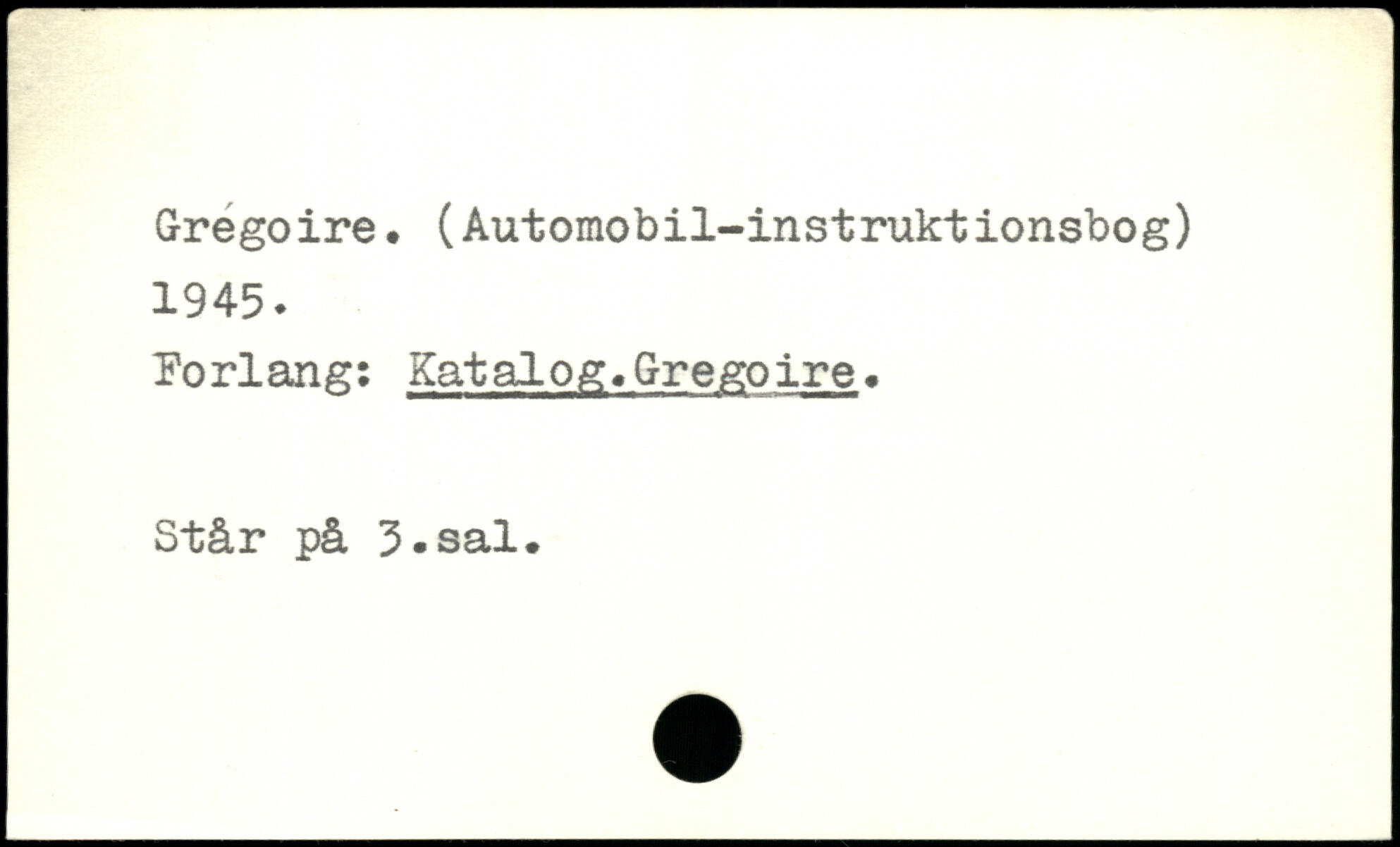 Grégoire. (Automobil-instruktionsbog) 1945. Forlang: Katalog.Grégoire. Står på 3.sal.