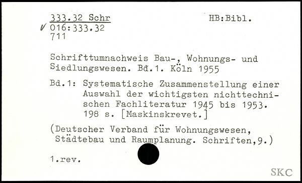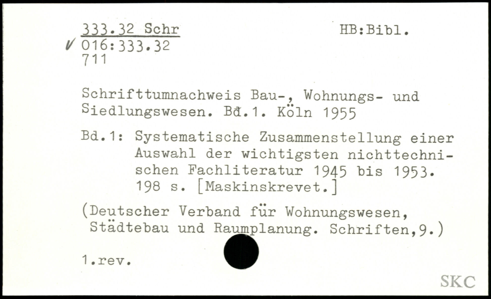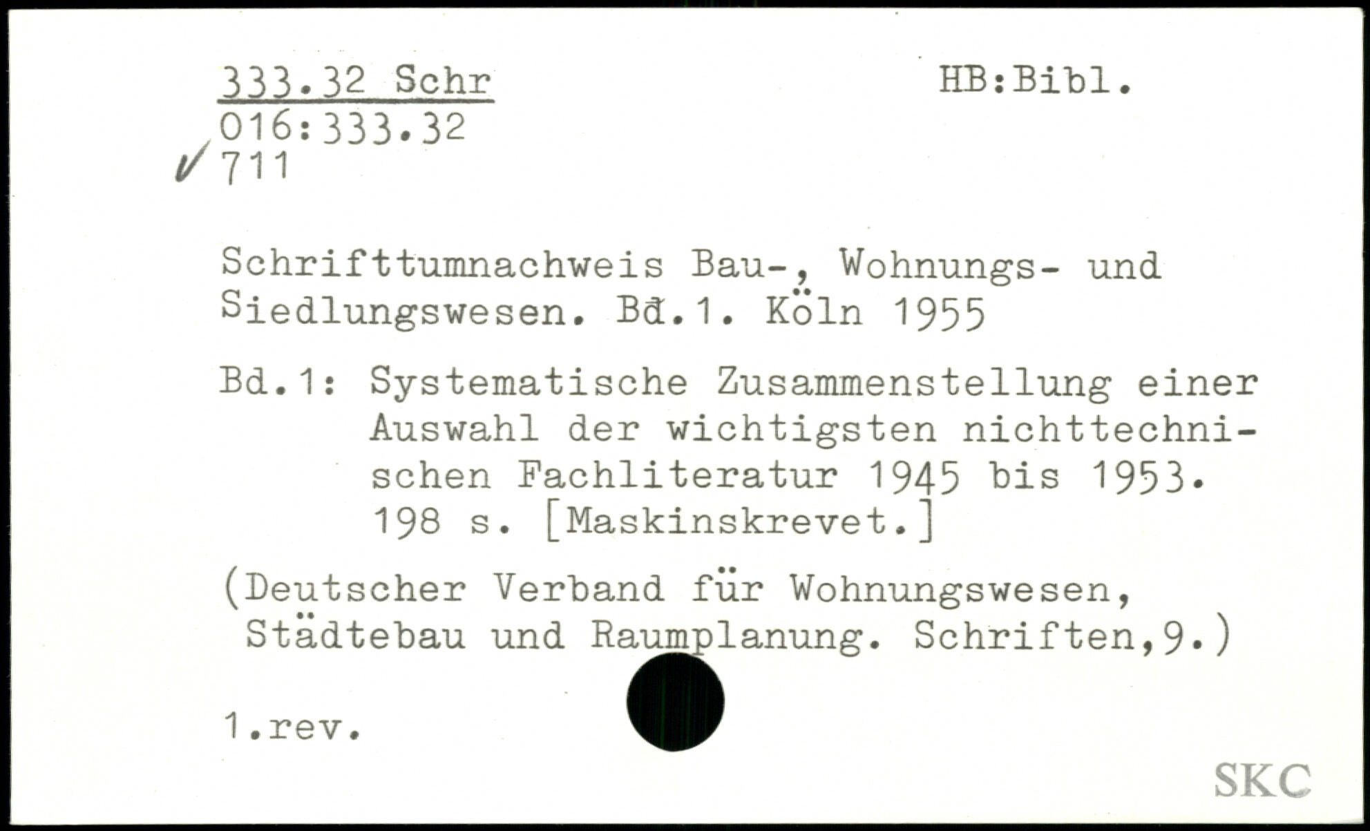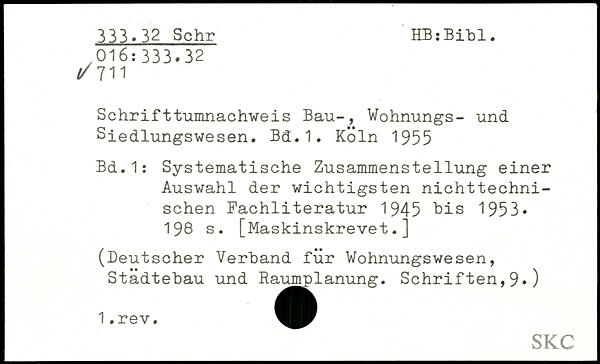 Schrifttumnachweis Bau-, Wohnungs- und Siedlungswesen.