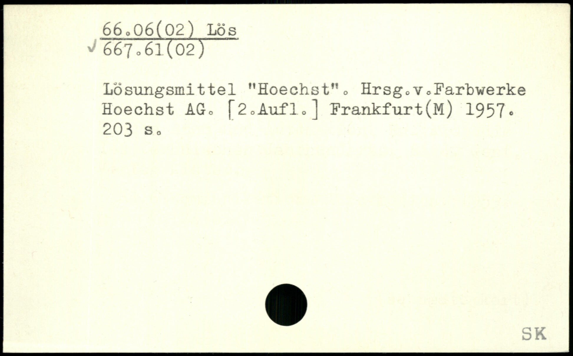 Lösungsmittel ”Hoechst"0 HrsgoVoFarbwerke Hoechst AGo [2,Auflo] Frankfurt(M) 1957.