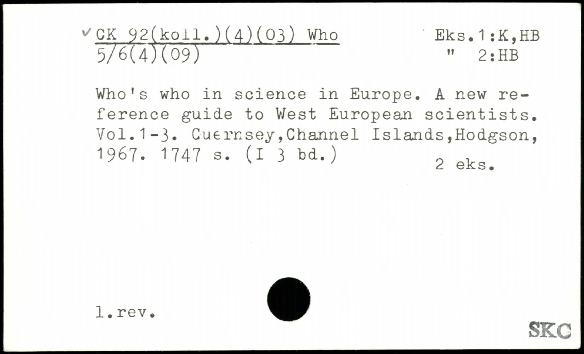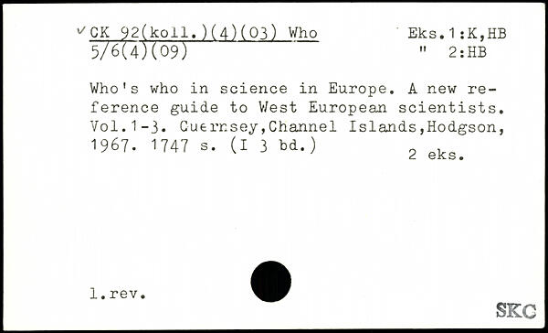 Who's who in science in Europe. A new reference guide to V/est European scientists.
