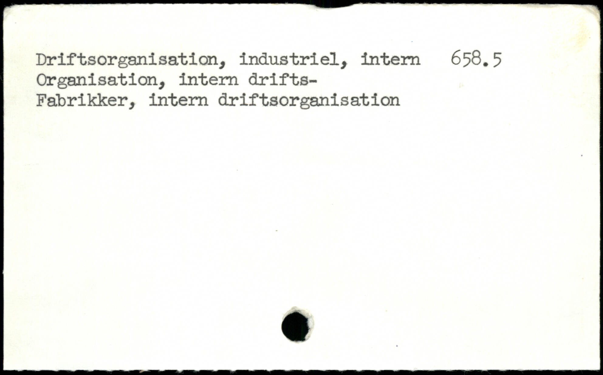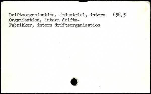 Driftsorganisation, industriel, intern 658.5 Organisation, intern drifts-Fabrikker, intern driftsorganisation
