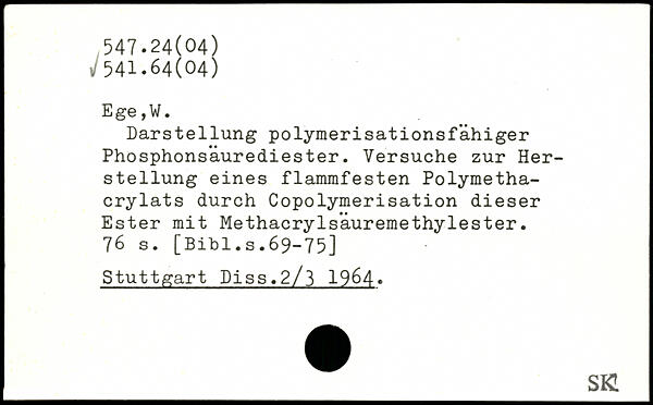 Darstellung polymer i sat ionsf ähi ger Phosphons'åuredies ter. Versuche zur Herstellung eines flammfesten Polymetha-crylats durch Copolymerisation dieser Ester mit Methacryls’auremethylester.