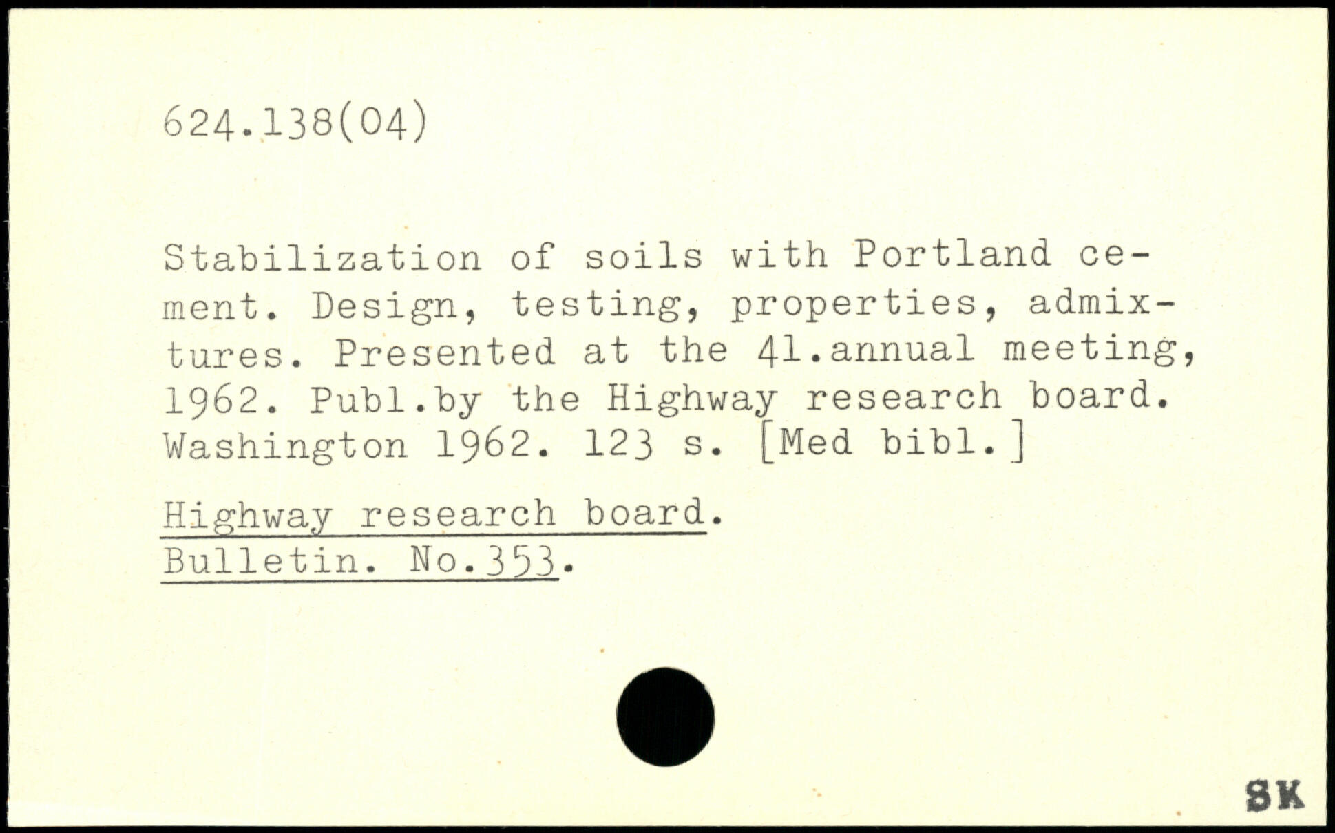 Stabilization of soils with Portland cement. Design, testing, properties, admixtures. Presented at the 41.annual meeting, 1962.